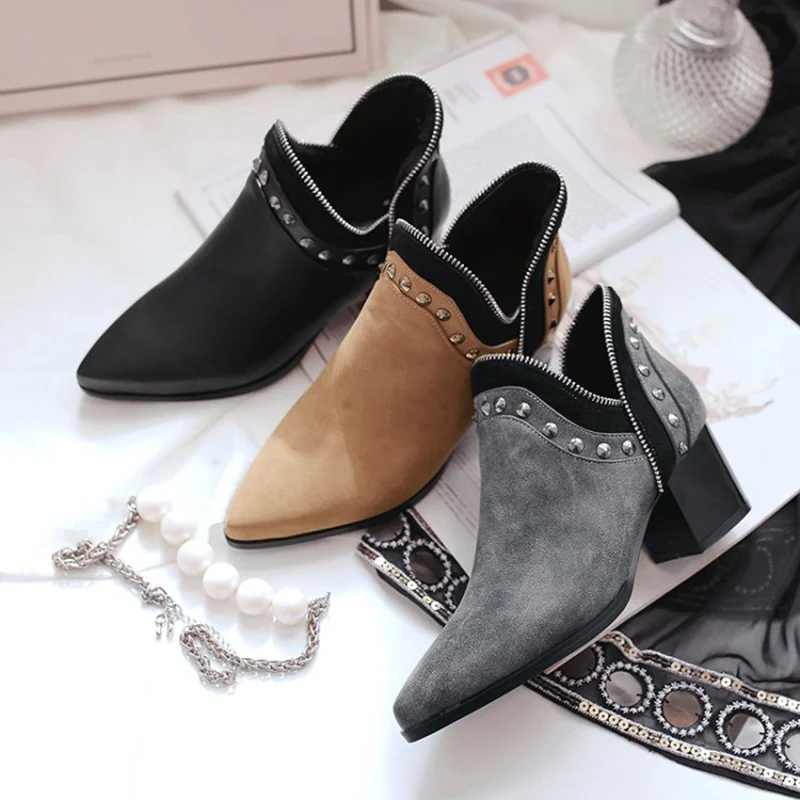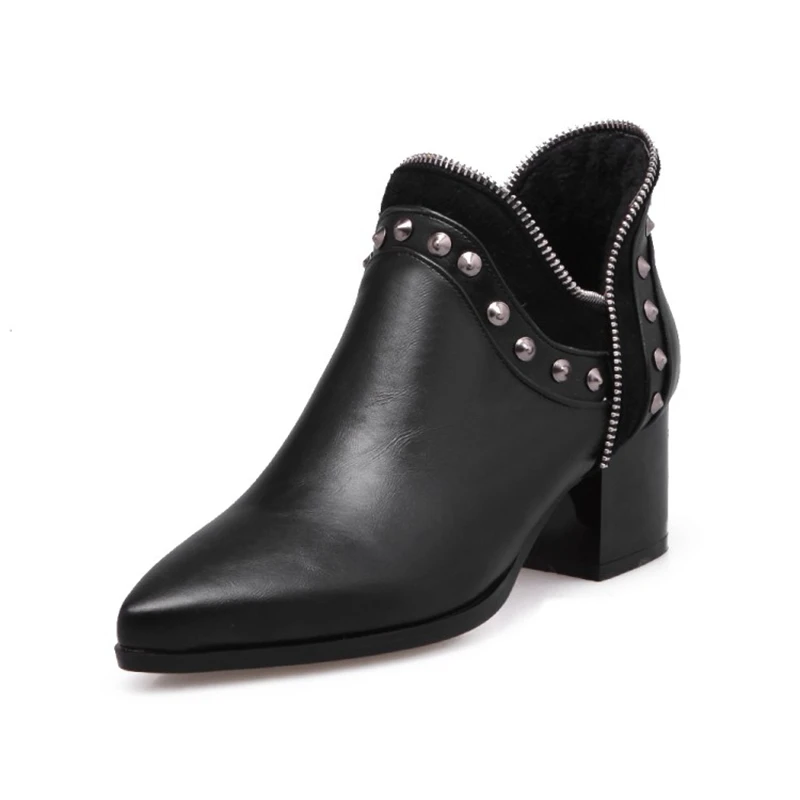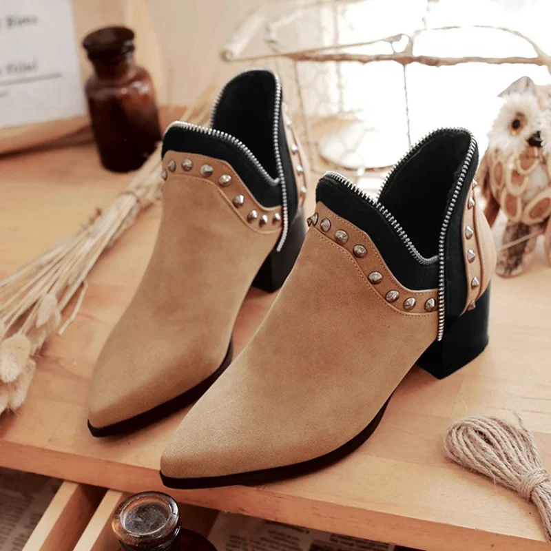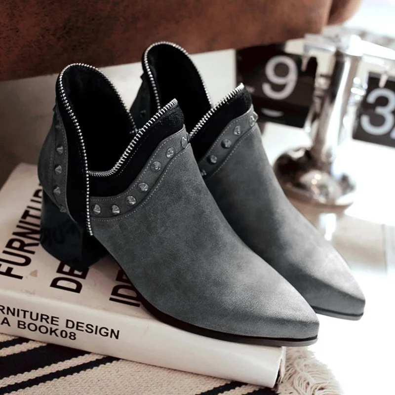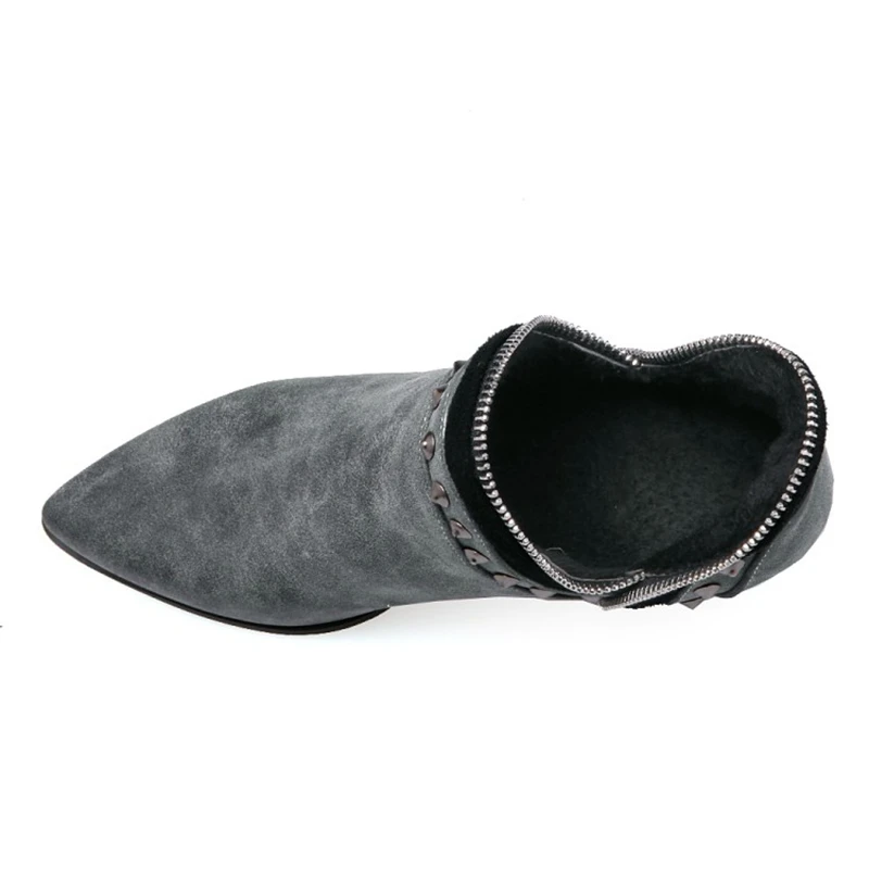 Зимние короткие ботинки Женская обувь из искусственной замши с острым носком на