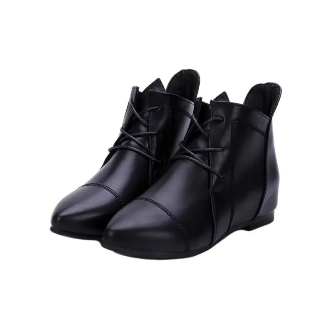 Женские модные красивые туфли на плоской подошве с заостренным носком; Ботинки на шнуровке; Женская Увеличить танцы ботильоны, ботинки