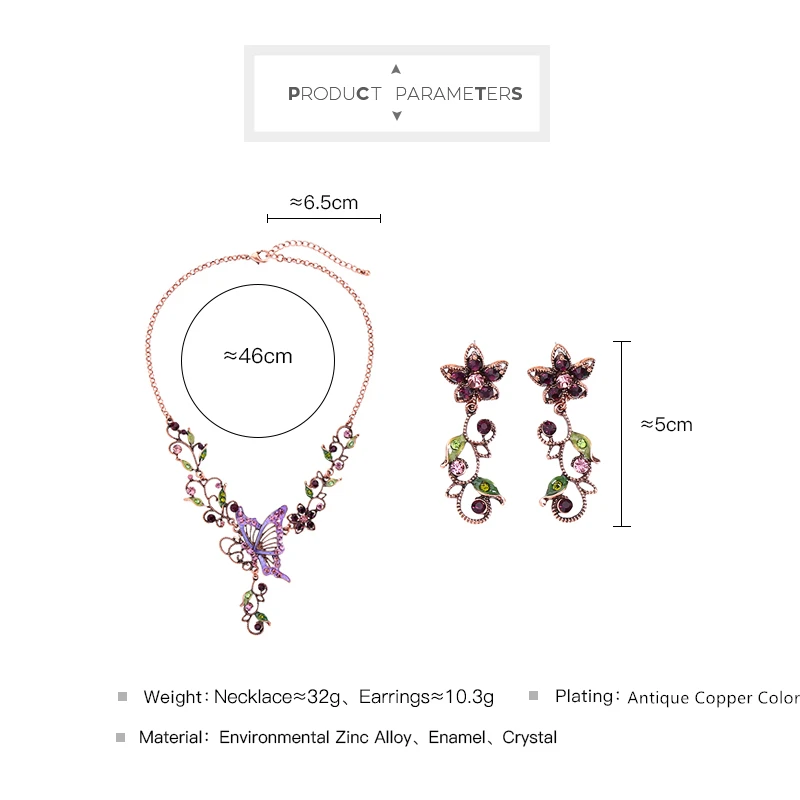 Bohamia Новое поступление кристалл эмаль цветок бабочка серьги ожерелье для женщин ручной работы подарок на свидание ювелирные изделия аксессуары