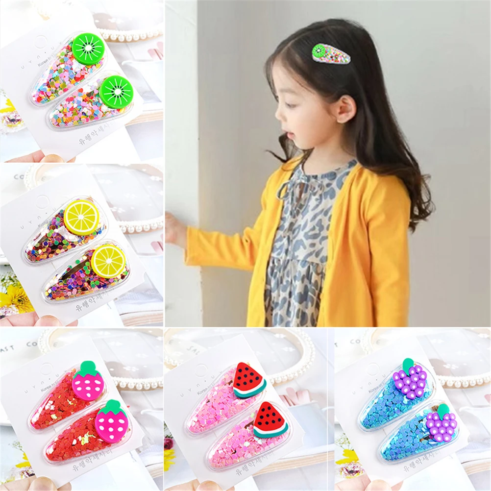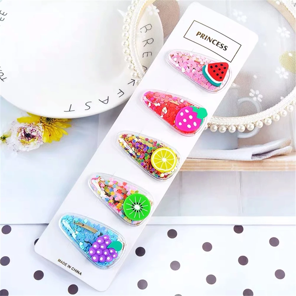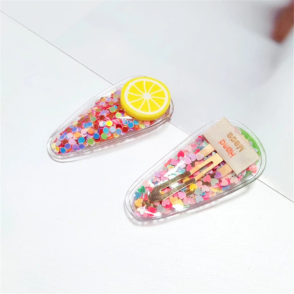 M MISM прозрачные заколки для волос для девочек в форме сердца уникальные персонализированные аксессуары для волос для девочек блестящие заколки для волос с блёстками фрукты ПВХ шпилька