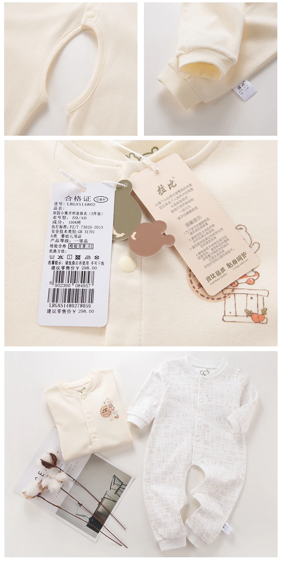 √ Материал: 100% хлопок, удобный и дышащий √ Дизайн: милый рисунок с медведем из мультфильма √ Легко носить: Одинарная вязаная кнопка √ Подходит для мальчиков и девочек на весну-осень, 3-9 месяцев √ Комплектация: комплект комбинезона с длинными рукавами из 2 предметов