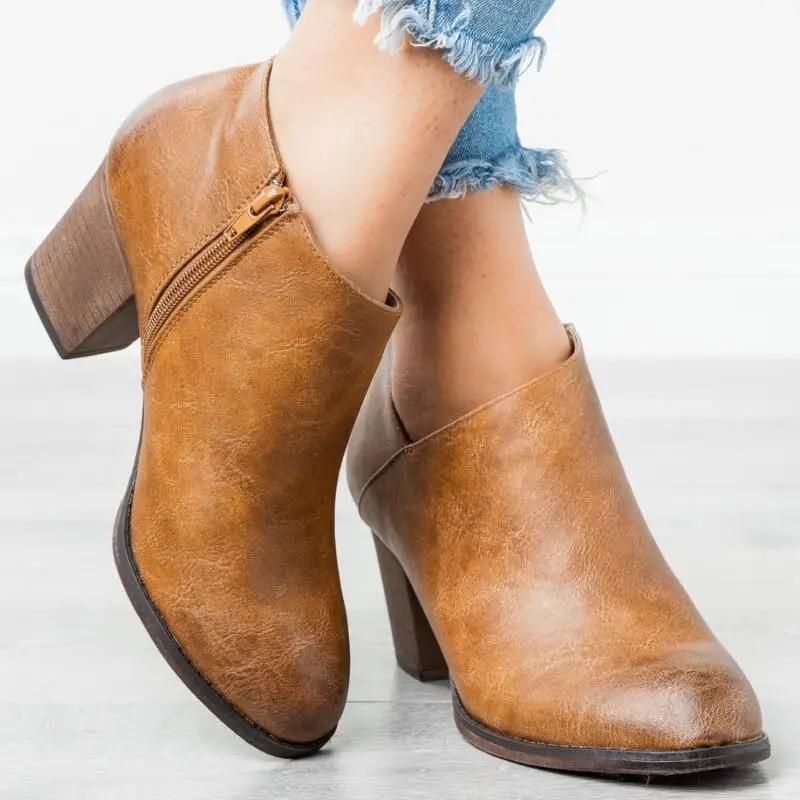 Женские ботильоны; осенние туфли-лодочки на Высоком толстом каблуке с круглым носком; женская обувь; chaussure zapatos mujer; Винтажные ботинки из искусственной кожи; HP1889