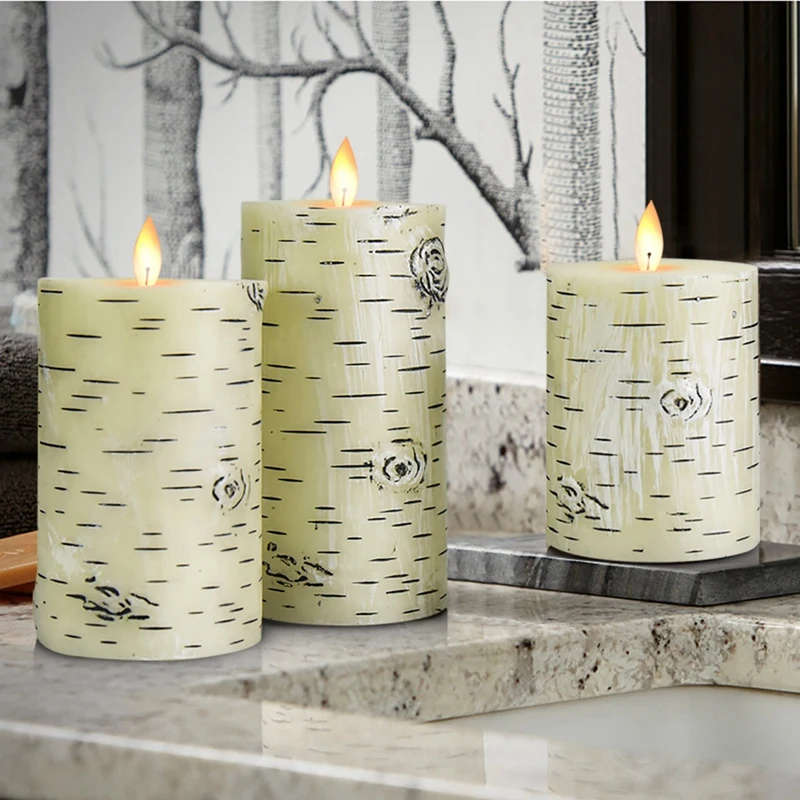Беспламенные светодиодные свечи Мерцающая Березовая кора без запаха столб