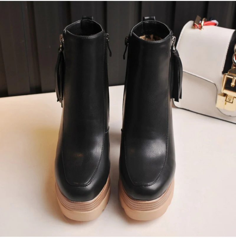 Женские ботильоны из коровьей кожи Зимние короткие плюшевые ботинки на молнии