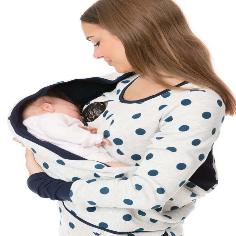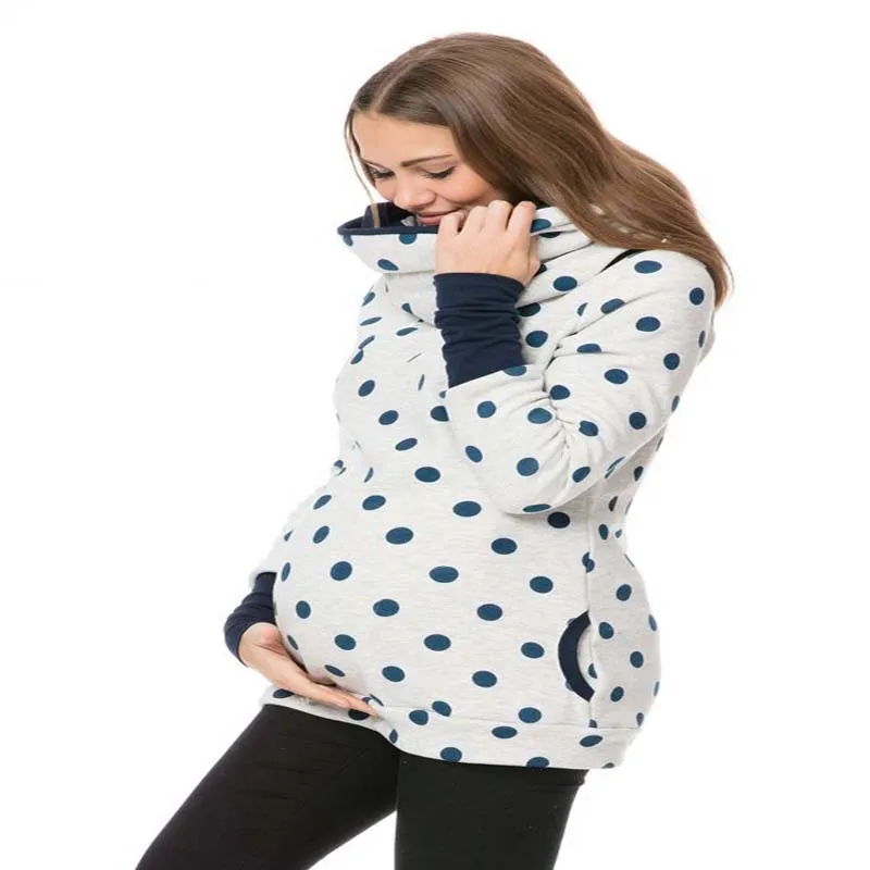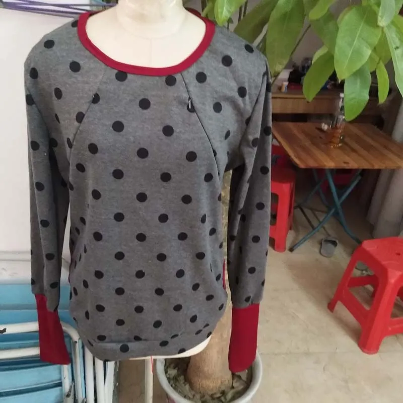 2. Повседневный уличный/закрытый топ с длинными рукавами для беременных из полиэстера с круглым вырезом, удобный и удобный для кормления для любого случая.