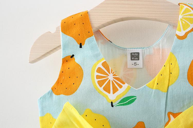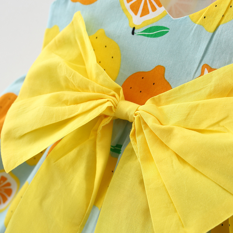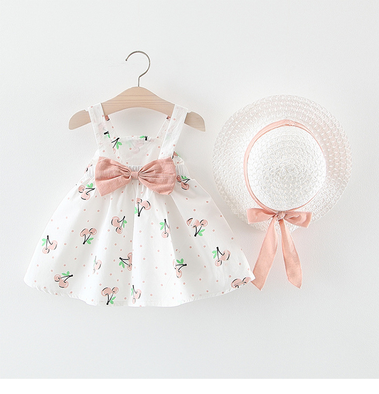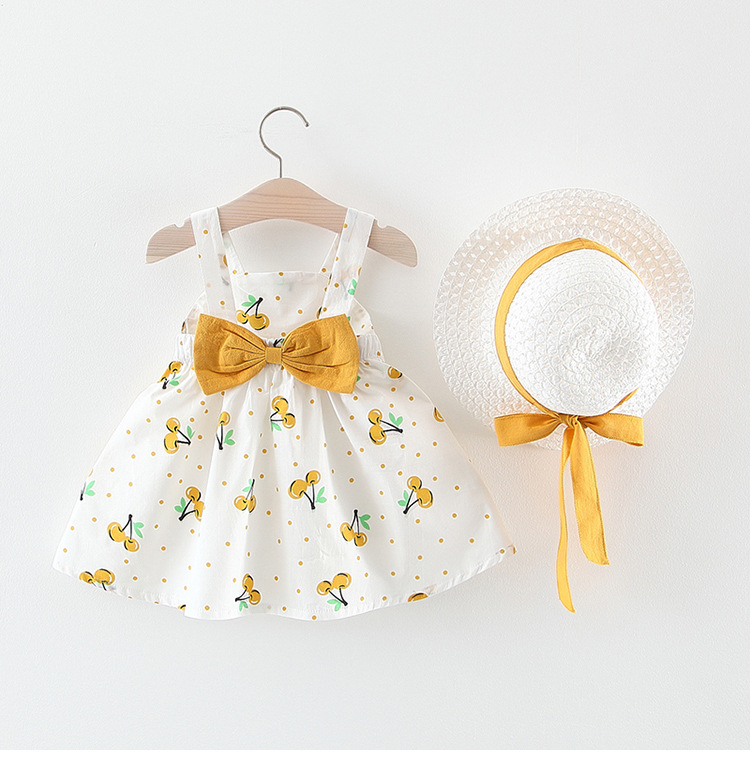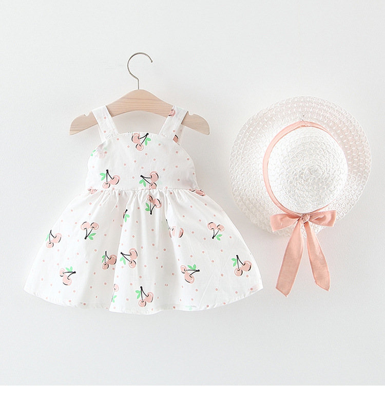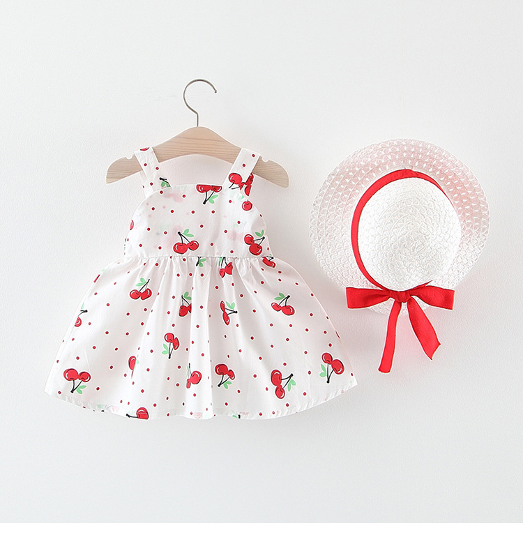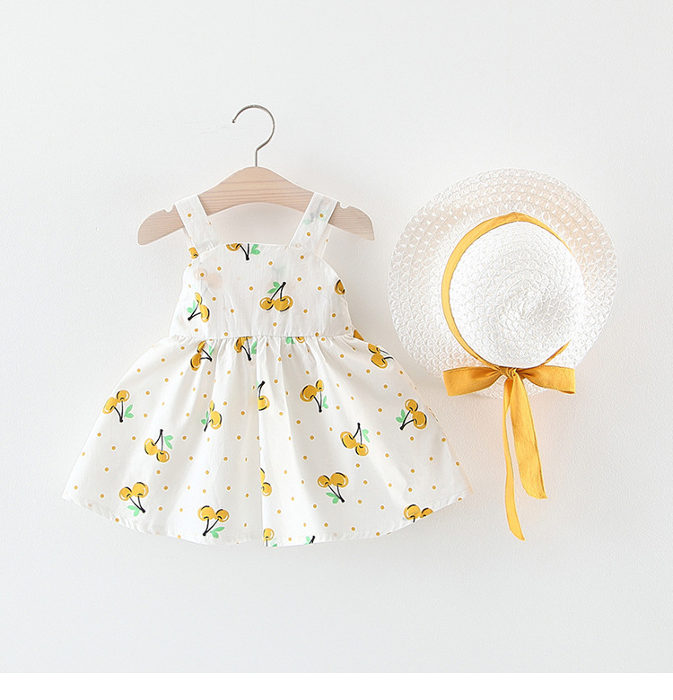 Лето 2019, новое платье для маленьких девочек, детское платье-майка с принтом вишни и фруктами, с солнцезащитным козырьком