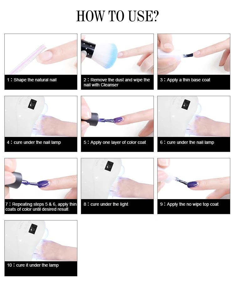 Информация о продукте: Бренд: O.R.I Название: коллекция геля Объем: 15 мл Цвета: 9 видов цветов Лампа для ногтей: светодиодный/УФ Особенности: 100% Новый Розничная и высокое качество Поможет упрочить ногти прочным блестящим пальто Идеально подходит как для профессионального использования, так и для личного использования Посылка включает в себя: 1 бутылка УФ гель для ногтей Как использовать УФ-гель для ногтей? 1. Очистите ногти, затем обрежьте поверхность ногтя, как обычный процесс маникюра. 2. Полностью встряхните лак, он может сделать цвет полировки сбалансированным. (ВАЖНО) 3. Сначала нанесите базовый гель, который может сделать лак длительным, излечим ультрафиолетовая лампа или Светодиодная лампа. (необходимо) 4. Нанесите лак непосредственно, вылейте УФ-лампой в течение 2-3 минут или вылейте светодиодный светильник в течение 60 секунд; при сухости нанесите 2-й слой и вылейте ультрафиолетовая лампа или Светодиодная лампа снова. 5. Пальто со съемным верхним пальто, которое может сделать цвет более блестящим, излечим ультрафиолетовая лампа или Светодиодная лампа. Как удалить УФ-гель для ногтей? 1. Замочите ногти в акриловое средство для удаления около 5 минут. 2. Аккуратно разорвите весь кусок эмалью для ногтей на каждый гвоздь.