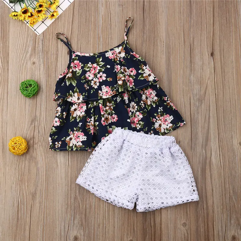 Летняя футболка для маленьких девочек + короткие штаны комплект одежды из 3
