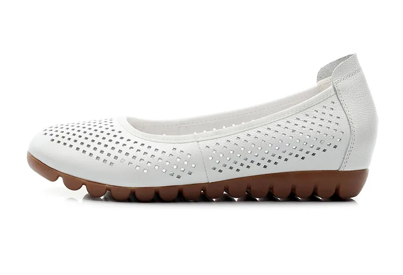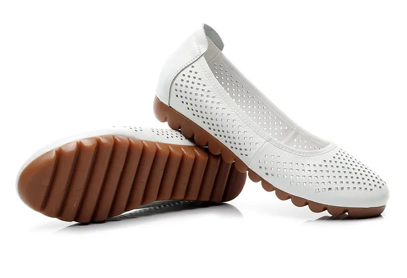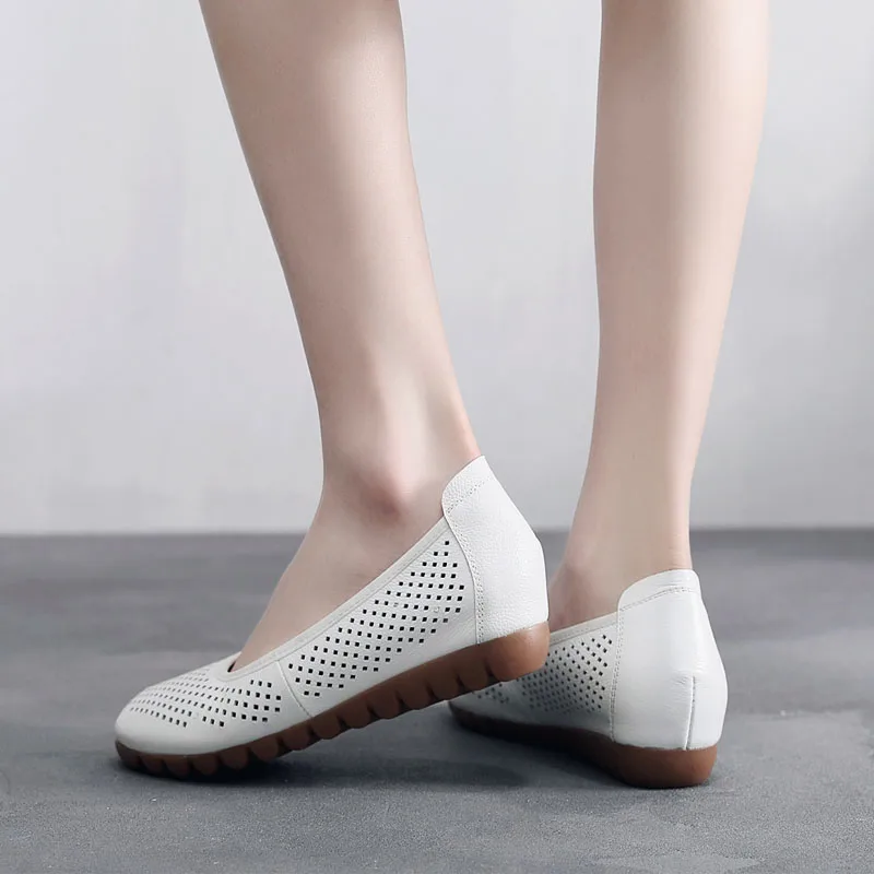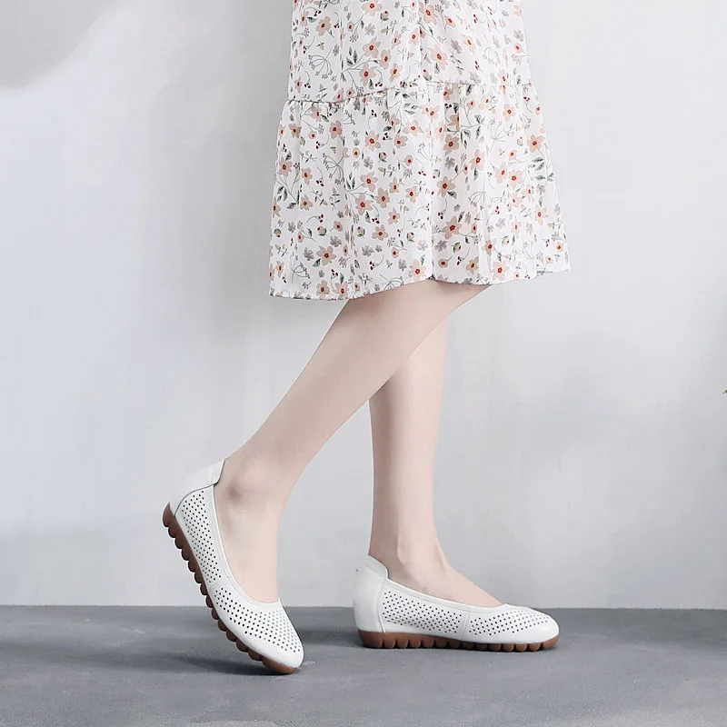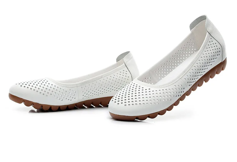 Мокасины женские из натуральной кожи дышащие балетки плоская подошва рабочие