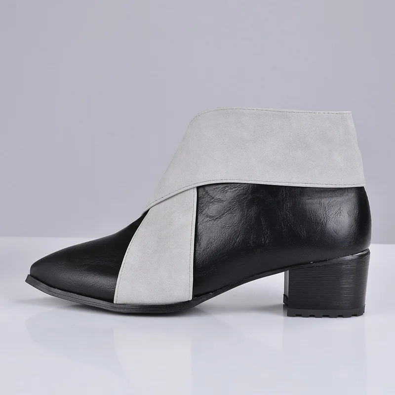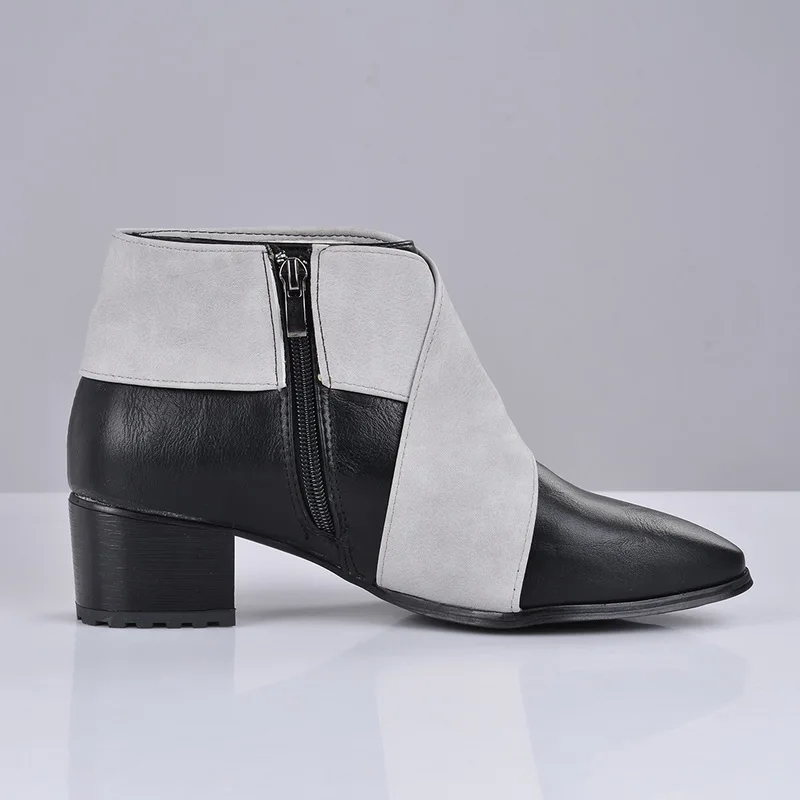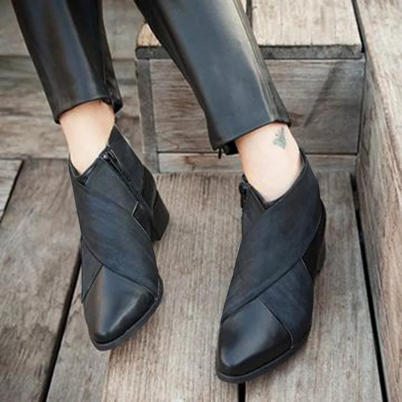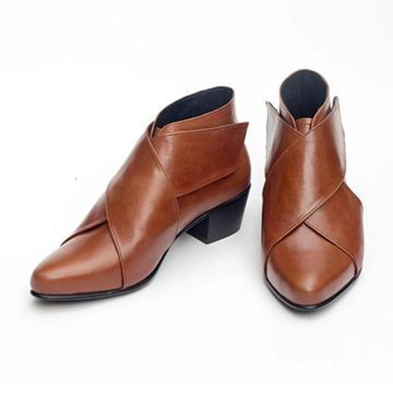 Осень Зимние женские ботильоны кожаные модные туфли на низком квадратном