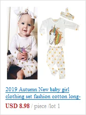 Коллекция 2019 года, модная Осенняя стильная одежда для новорожденных девочек комплект одежды для малышей, хлопковый комбинезон + штаны + шапка + повязка на голову, костюм из 4 предметов для малышей