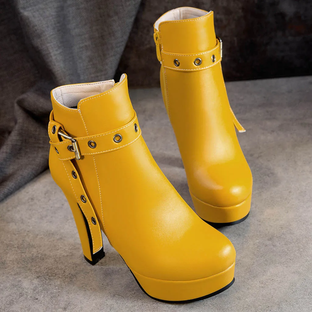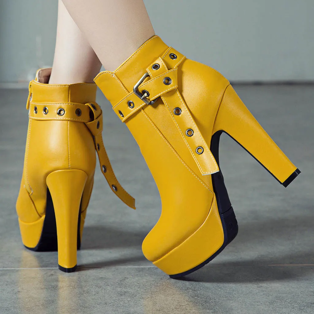 Ботинки на высоком массивном каблуке и водонепроницаемой платформе.