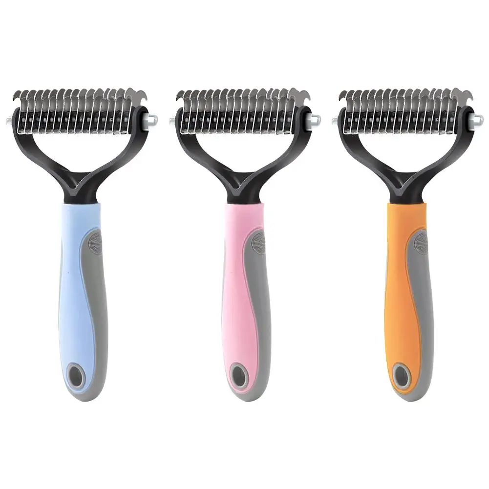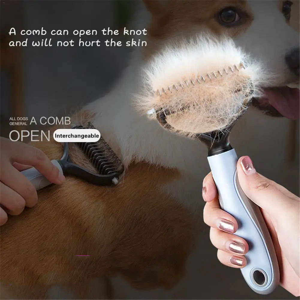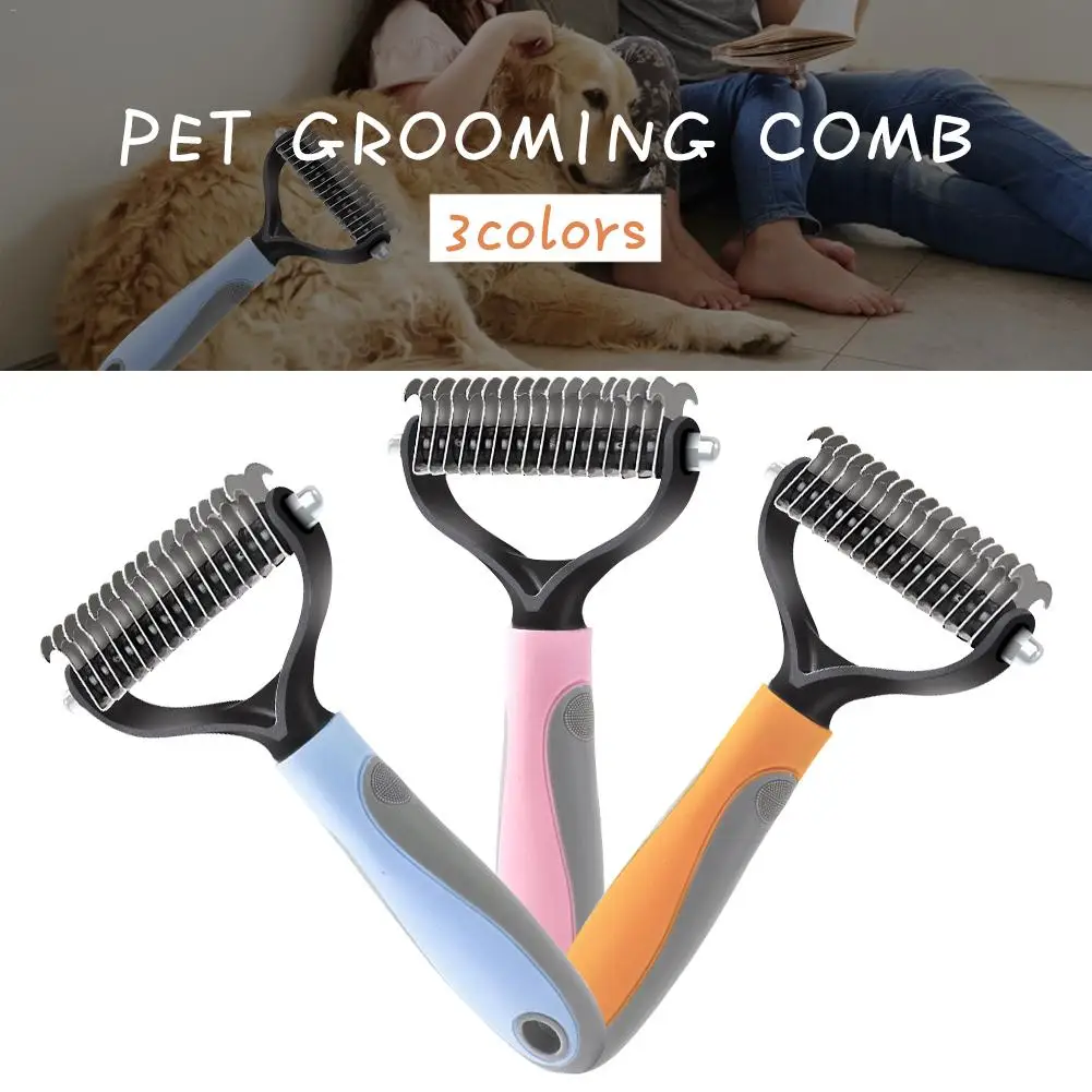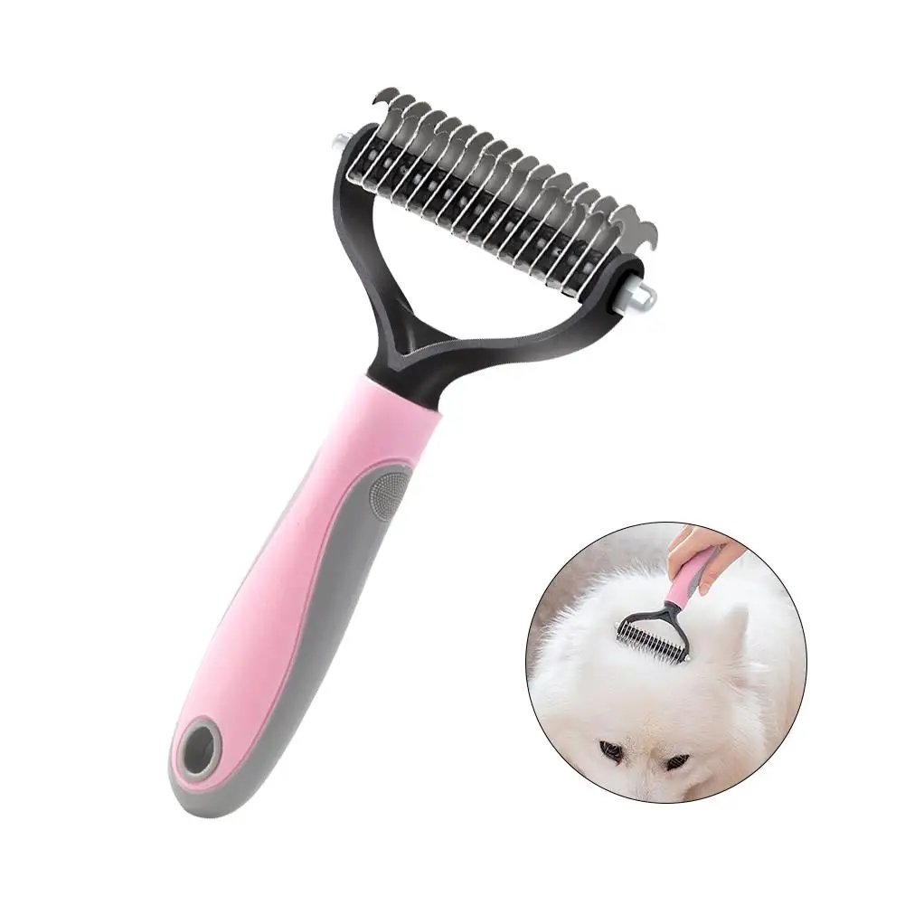 Расческа для ухода ха шерстью животных Собака волос Двусторонняя расческа для волос из натуральной щетины щетка для удаления специально для большая собачья из нержавеющей стали ТПР резиновой ручкой