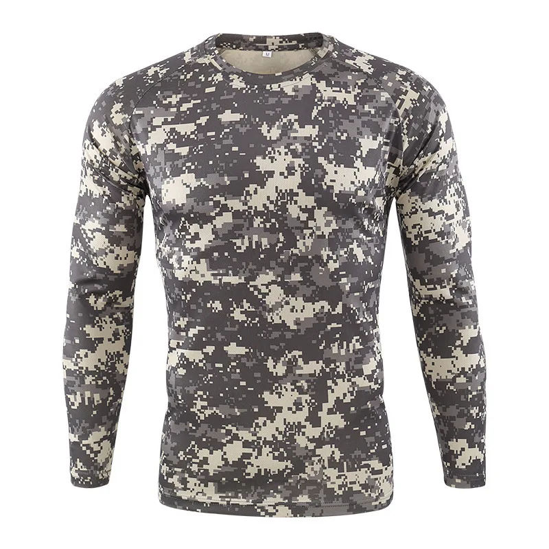 Мужская камуфляжная рубашка для рыбалки, уличные Топы с длинным рукавом и круглым вырезом, тактические боевые Военные Поклонники армии, быстросохнущая дышащая одежда
