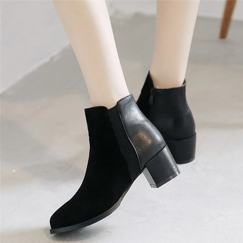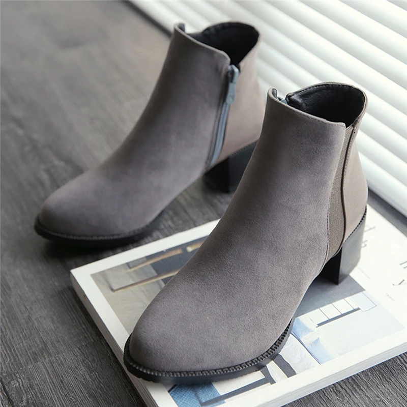 Bota Feminina Couro/большие размеры; ботильоны в стиле ретро на среднем каблуке с молнией; женские нескользящие ботинки без шнуровки; Студенческая зимняя обувь