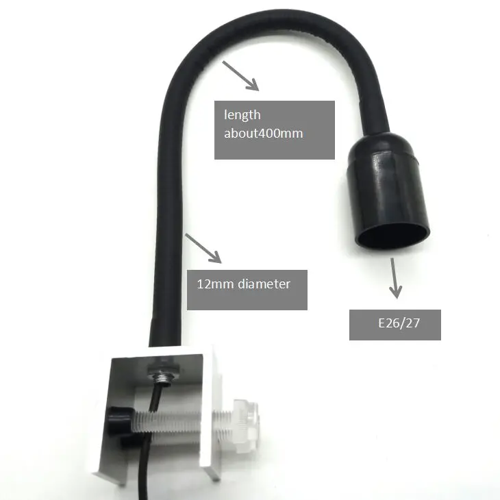 (Патрон лампы E27Цвет корпуса: черный шланг goosneck и серебристая основа зажима)