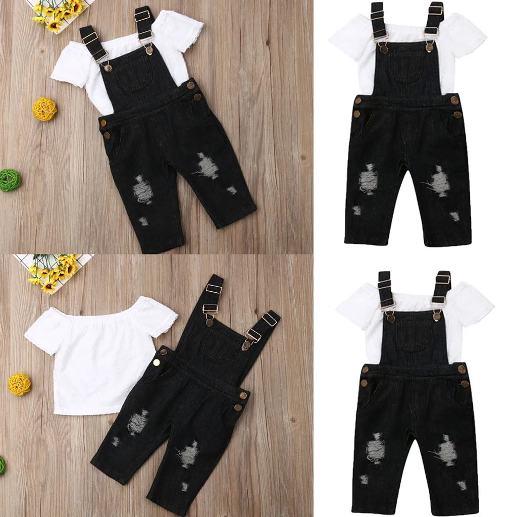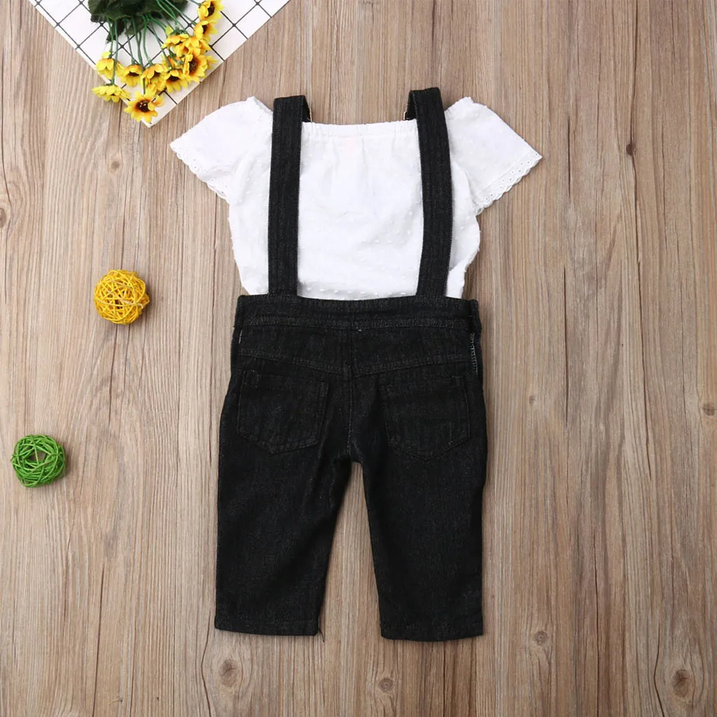 Комплект одежды для маленьких девочек: топ с открытыми плечами + джинсовые штаны на подтяжках
