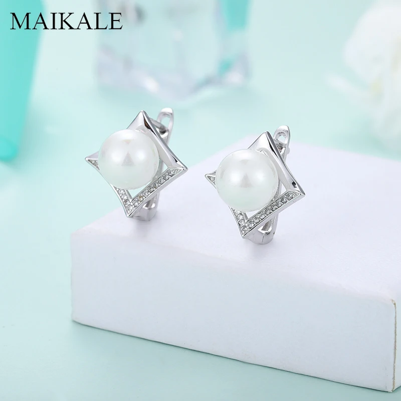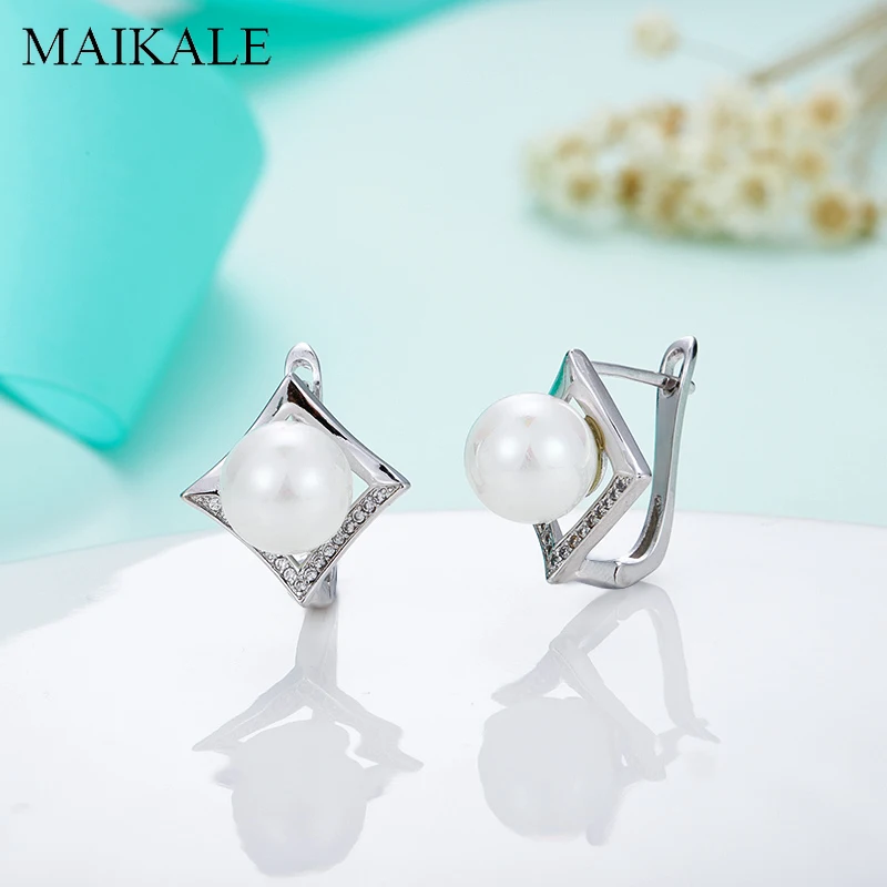 Женские серьги-гвоздики MAIKALE, роскошные серебряные серьги-гвоздики с жемчугом и цирконием, 10 мм, ювелирное изделие, подарок для девочек