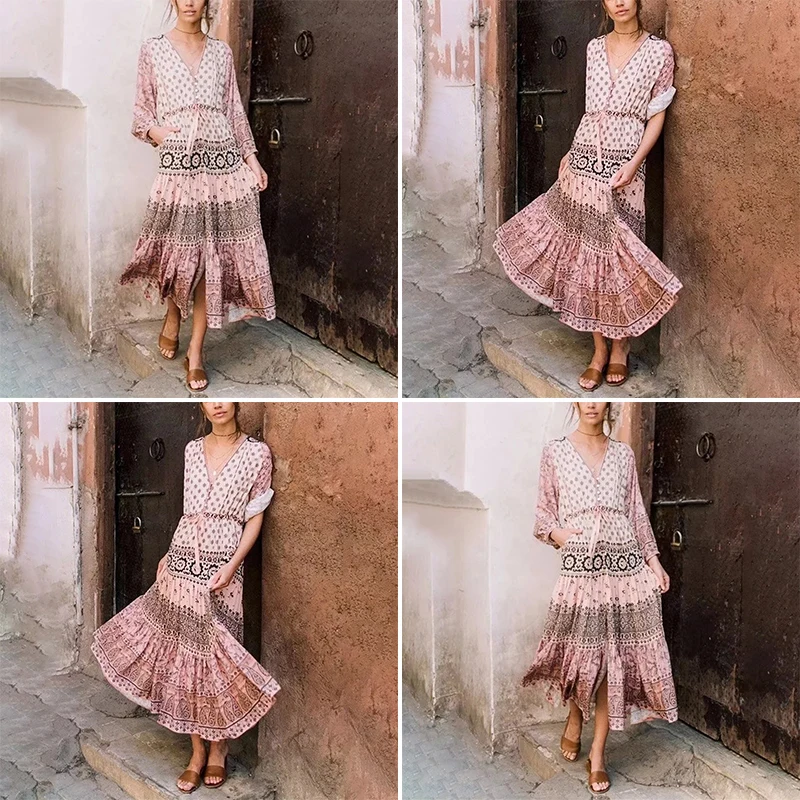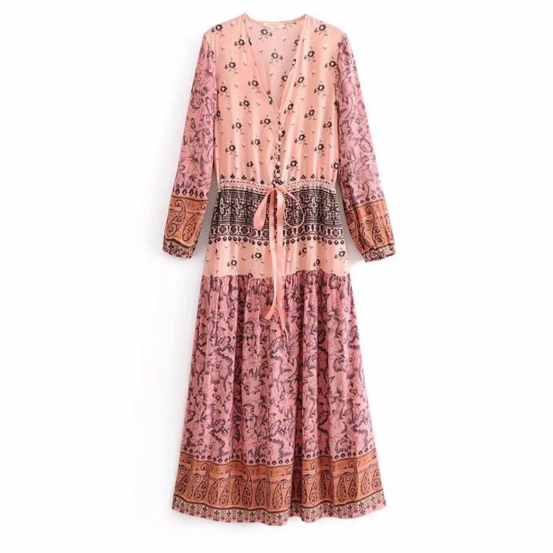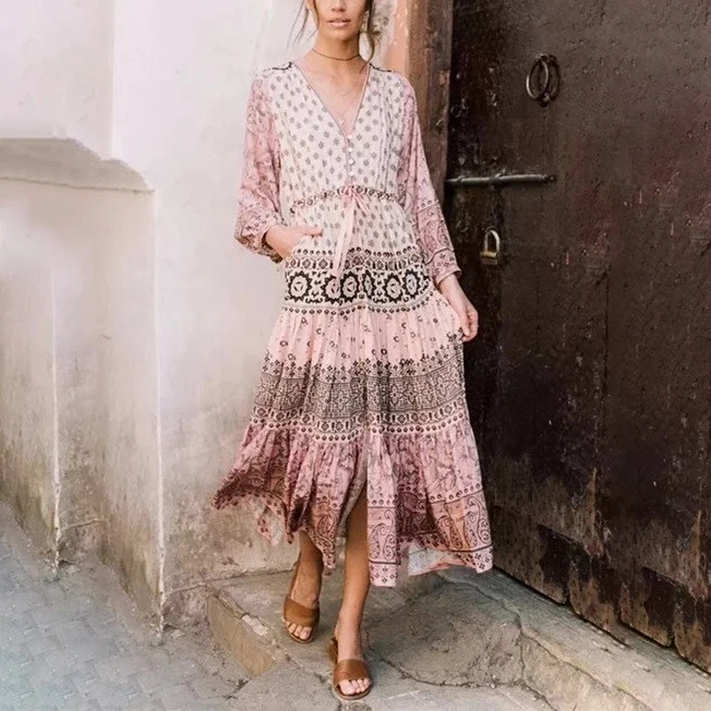*Item Description: Bohemian, V-Neck, Long Sleeve, Large Pendulum, Print