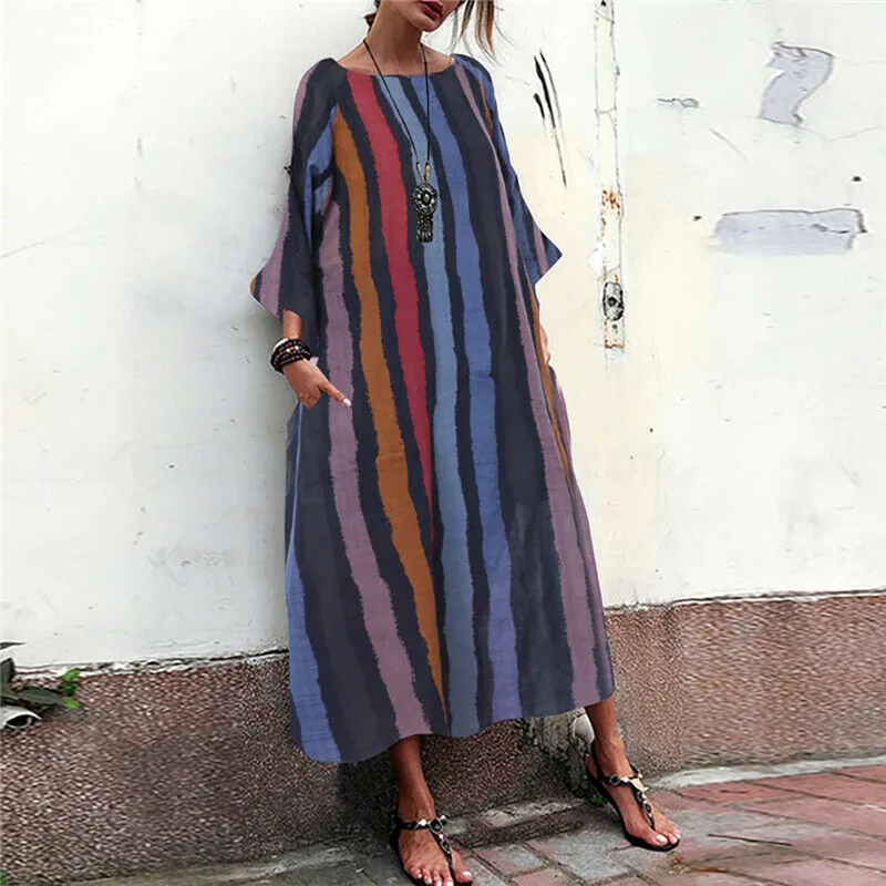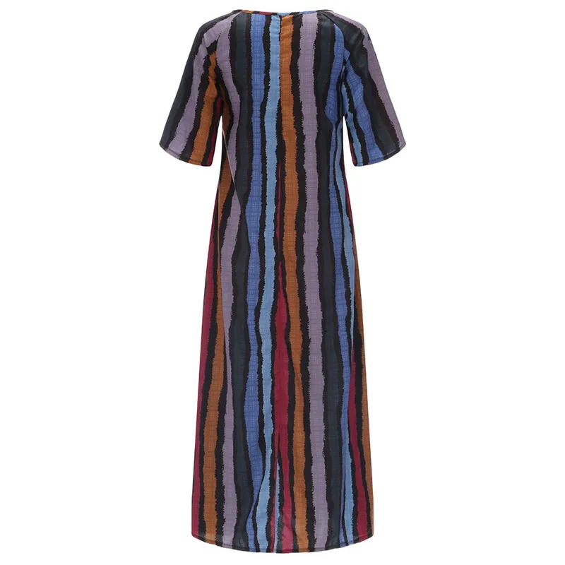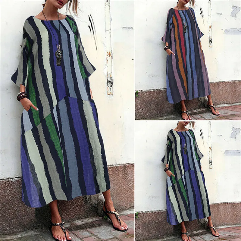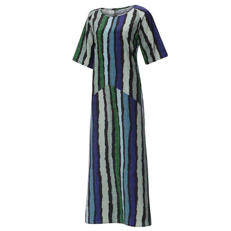 Женское летнее осеннее платье 2019 модное богемное Полосатое платье свободного кроя большого размера с карманами Повседневное платье с круглым вырезом Jul
