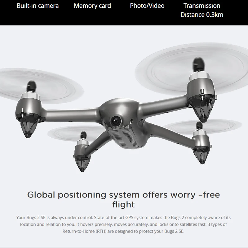 Функции: Ascend, спуск, движение вперед, назад, левый/правый боковый полет, левый/правый поворот, передача Wi-Fi, удержание высоты GPS, автоматическое возврат одной кнопкой, следуй за мной, интересные элементы полета, функция будильника.