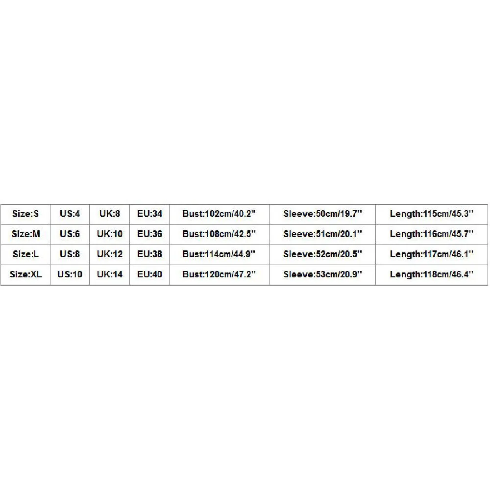| Размер: XL | США: 10 | Великобритания: 14 | ЕС: 40 | Обхват груди: 120 см/47,2 дюйма | Рукав: 53 см/20,9 дюйма | Длина: 118 см/46,4'' |