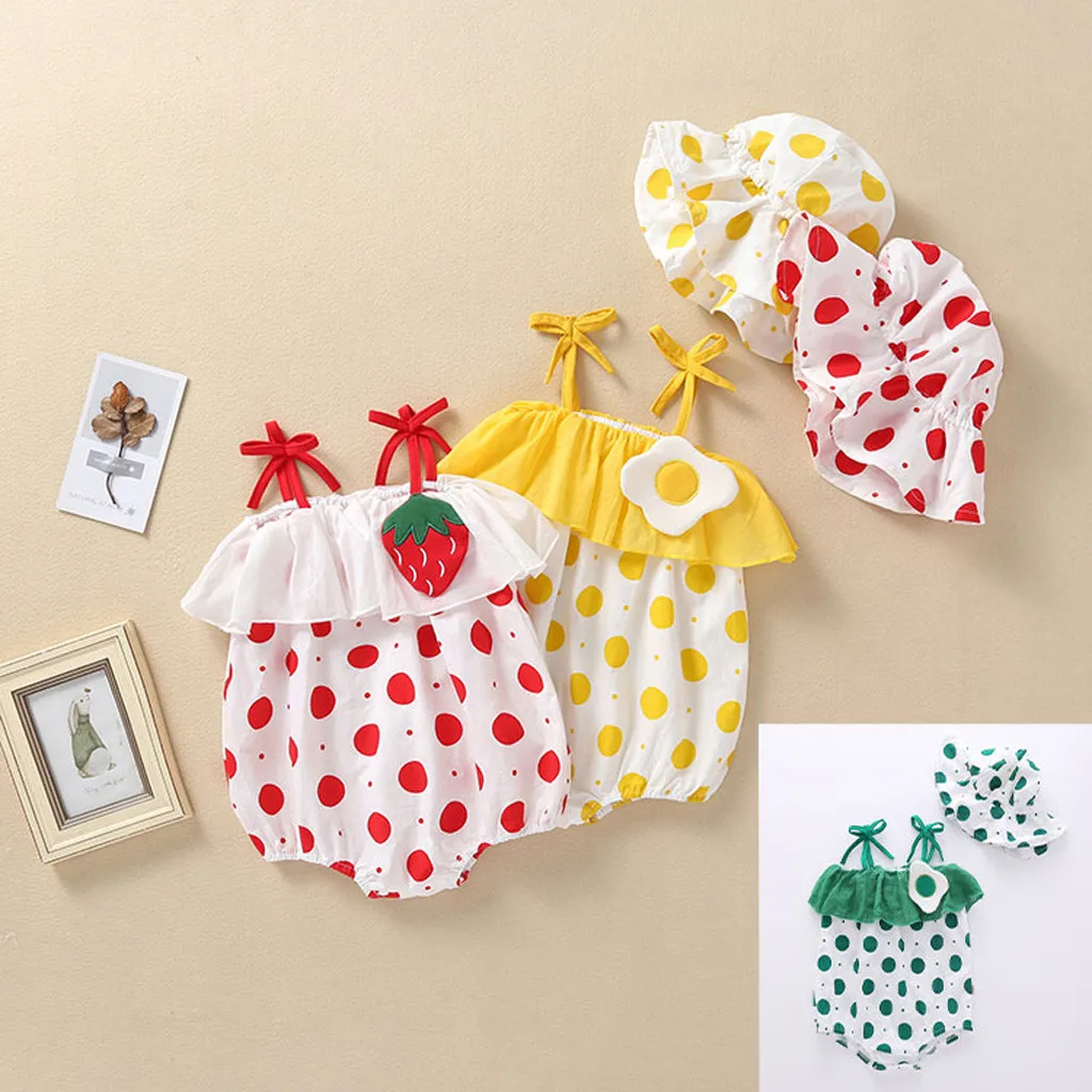Комбинезон с оборками и принтом в горошек для новорожденных девочек; Панамка; боди