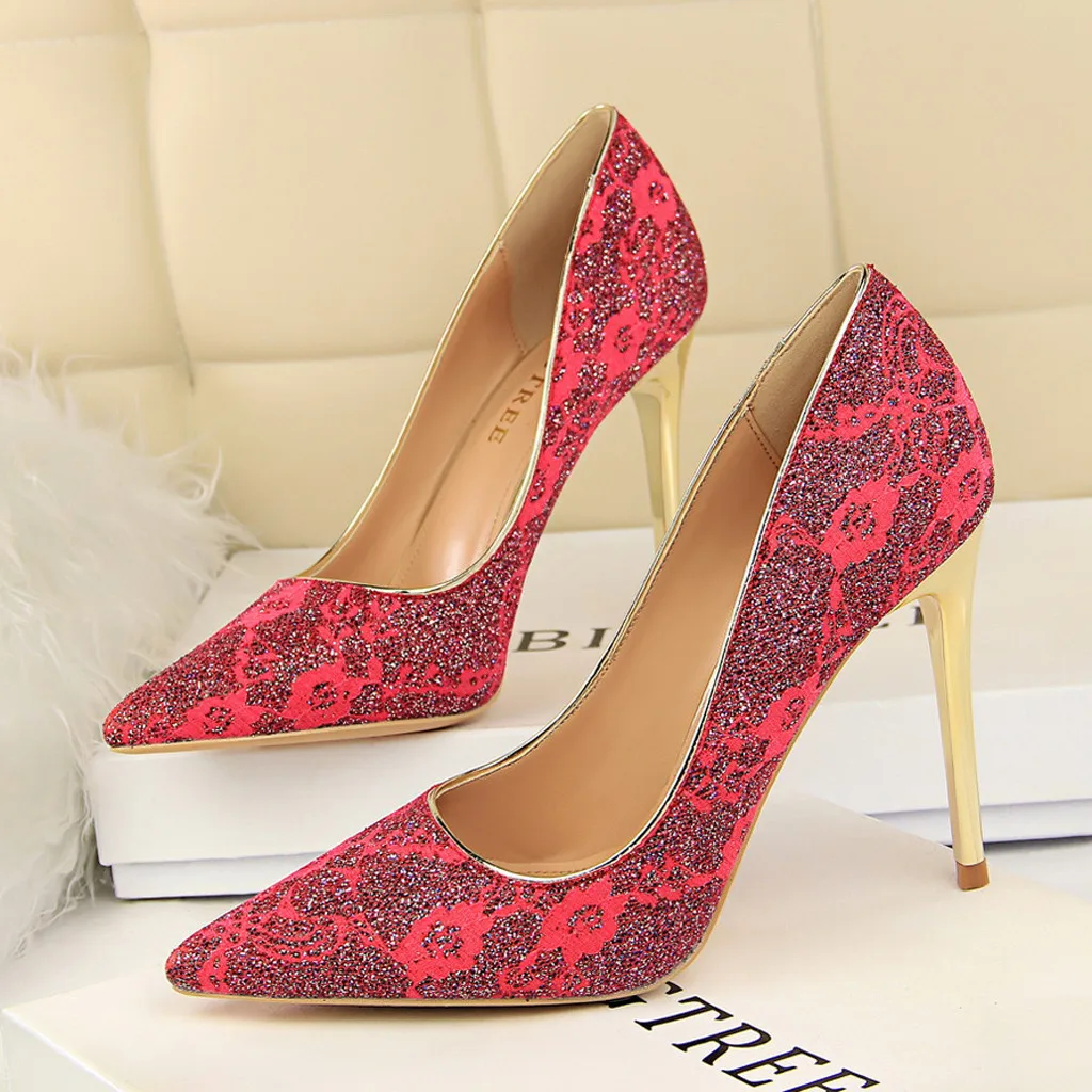 Женская обувь; вечерние на высоких каблуках; пикантные свадебные туфли с закрытым носком и кружевом для ночного клуба