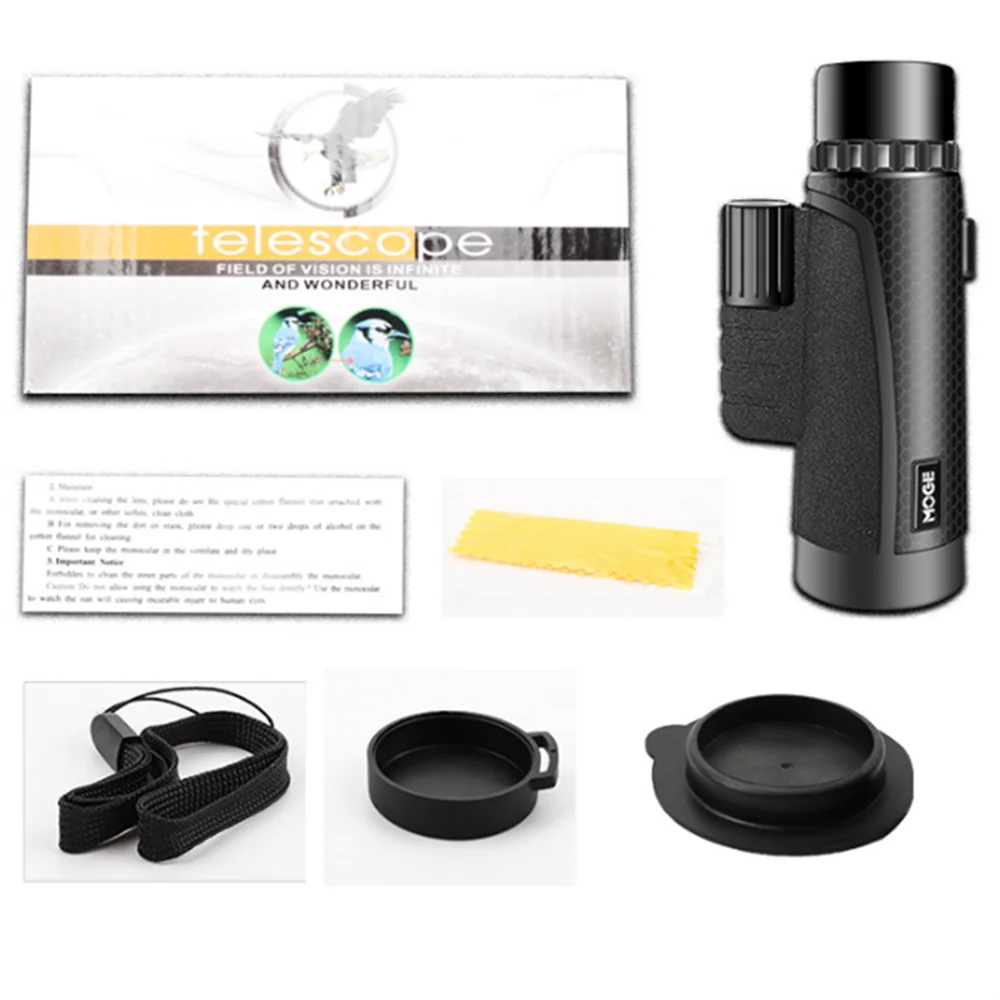 Монокуляр-это визуальный оптический инструмент, используемый для наблюдения за удаленными предметами. Он может увеличить небольшой угол отдаленного объекта при определенном увеличением, так что он имеет большой угол открытия в изображении пространства, что делает его незащищенным. Предметы, которые видны или выделяются, становятся четкими и разборчивыми. Поэтому Монокуляры являются незаменимым инструментом в астрономических и наземных наблюдениях. Это оптическая система, которая держит падающие параллельные лучи по-прежнему параллельны через объективную линзу и окуляр.
