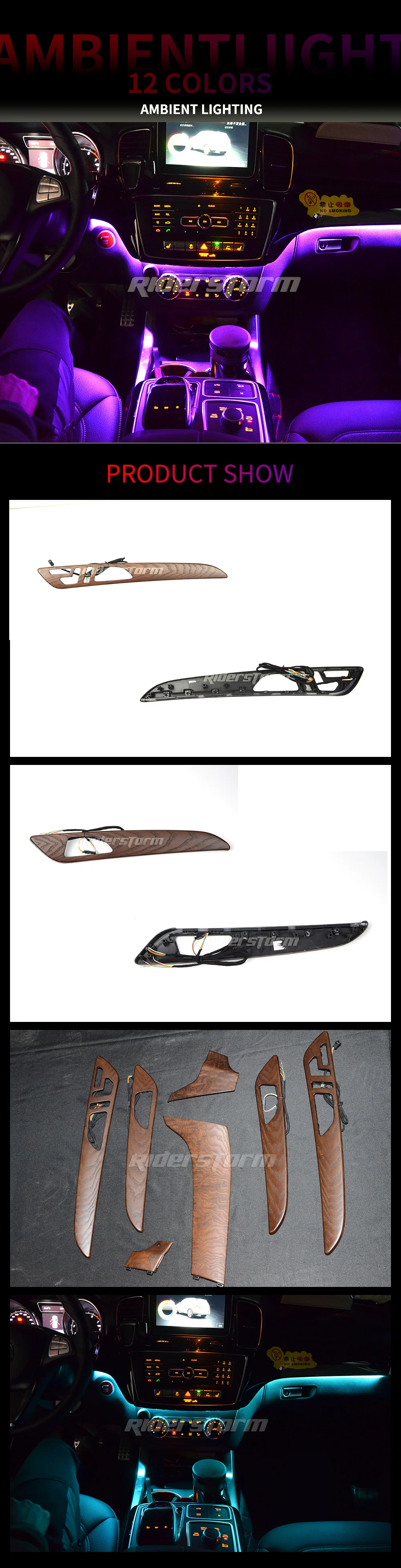 CUSTOM TAX NOT INCLUDED IN PRICE For Mecedes2015-2019 GLE Class ambient light In Stock! If your car has original three colors ambient light, do not need the adapter to upgrade. the product only include the ambient light, not include the peach board. for the car has no original ambient light, need change the car interior board to peach board,choose OBD board lit, means OBD + peach board + 12 colors ambient light