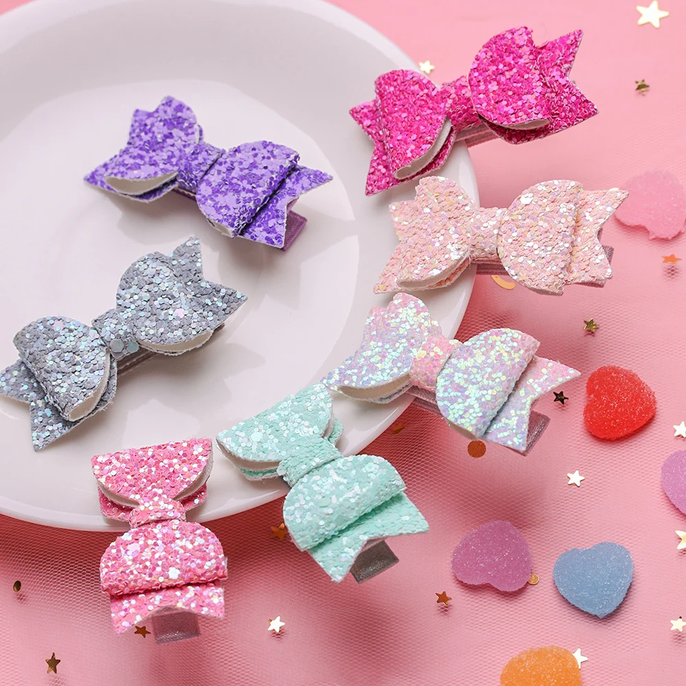 2 шт., милые мини-заколки с бантиками для маленьких девочек, двухслойные блестящие заколки с бантом, детские заколки для волос, блестки, головной убор принцессы, инструменты для укладки волос