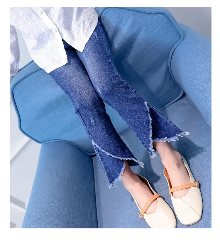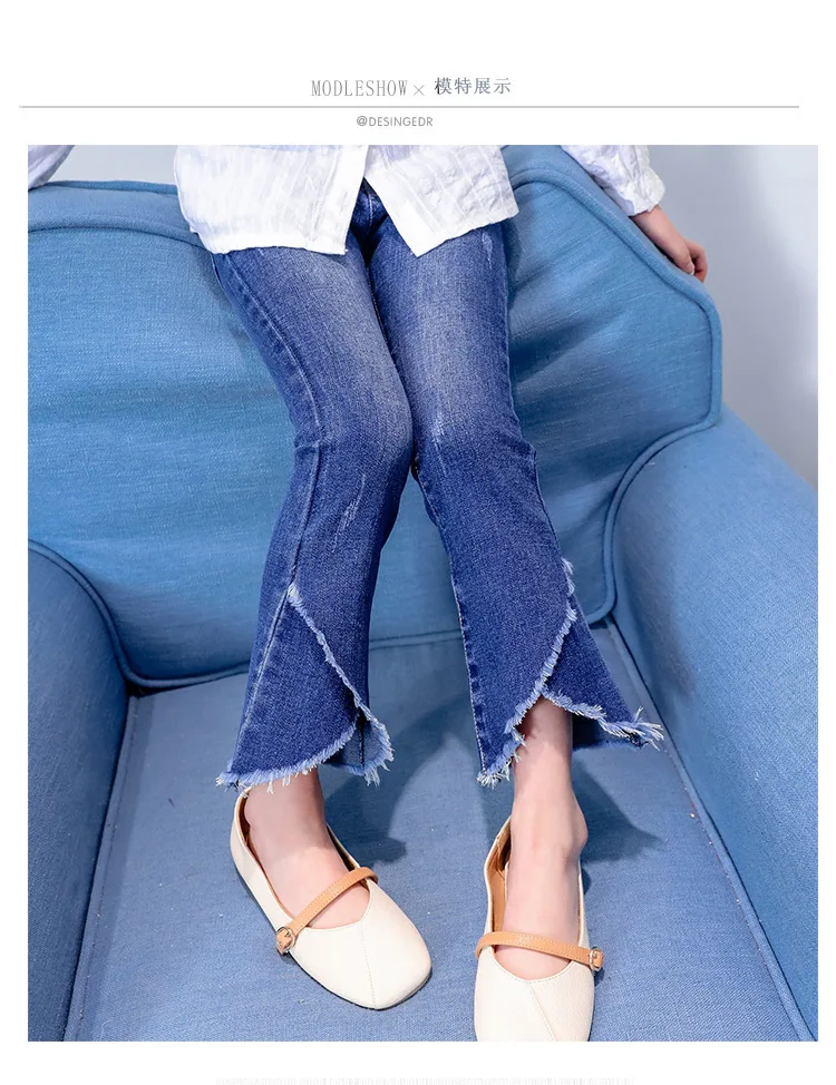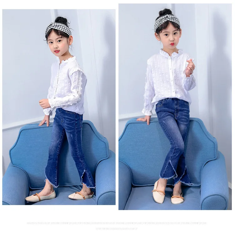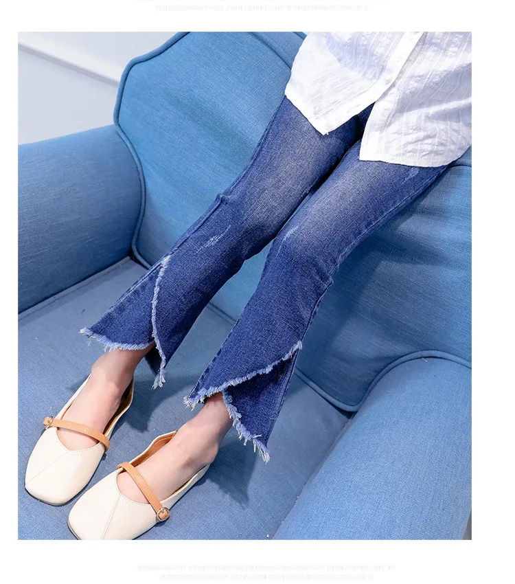 Джинсы для девочек осень 2019 г. Новые Стильные Детские расклешенные штаны модные