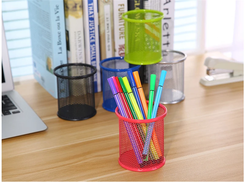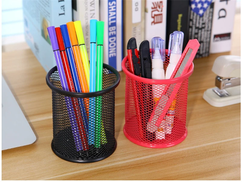 Student Stationery Creative Wrought Iron Hollow Desktop Storage Pen Holder Office Desk Organizer Pencil Round Pen Holder