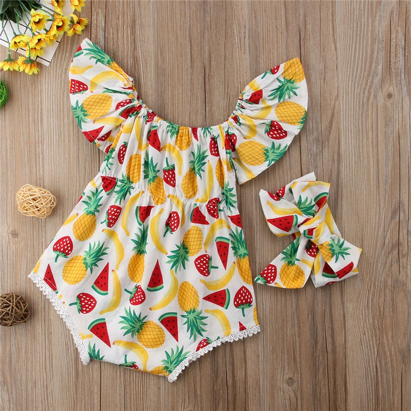 2019 летняя одежда для маленьких девочек Милый хлопковый мягкий Песочник с фруктовым принтом, комбинезон для новорожденных, одежда для малышей Детский комбинезон