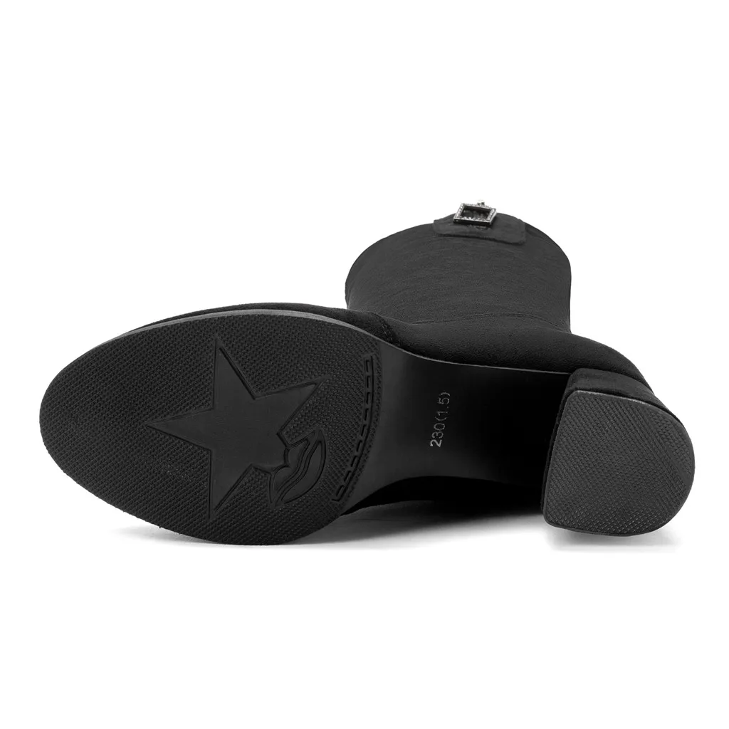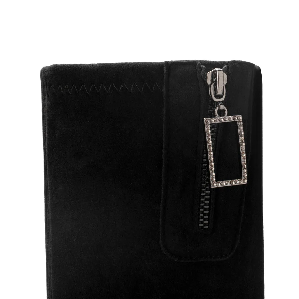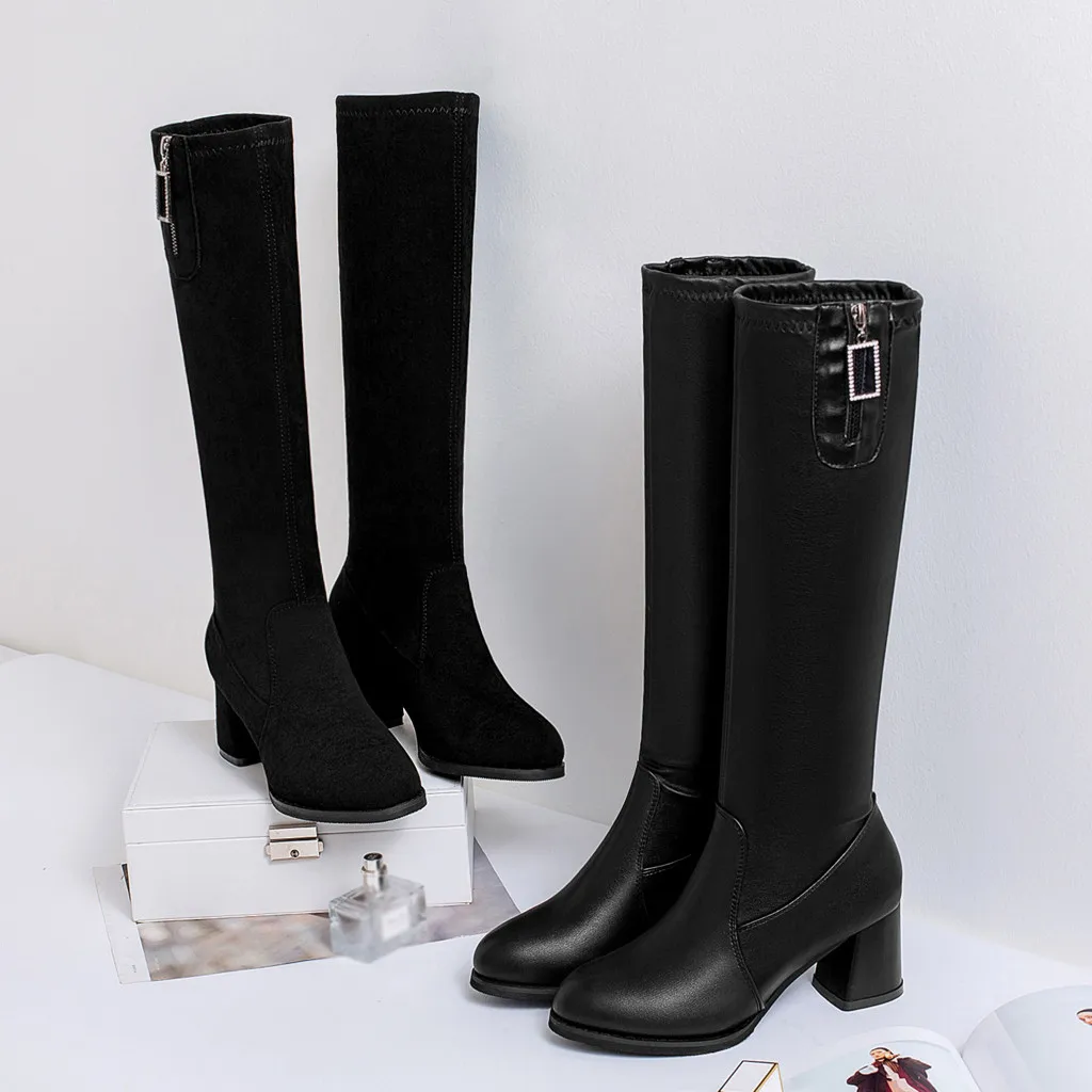 Женская одежда Сапоги до коленаЖенские ботинкиКлассический квадратный каблук из флокаМолнияБотинки с высоким голенищем