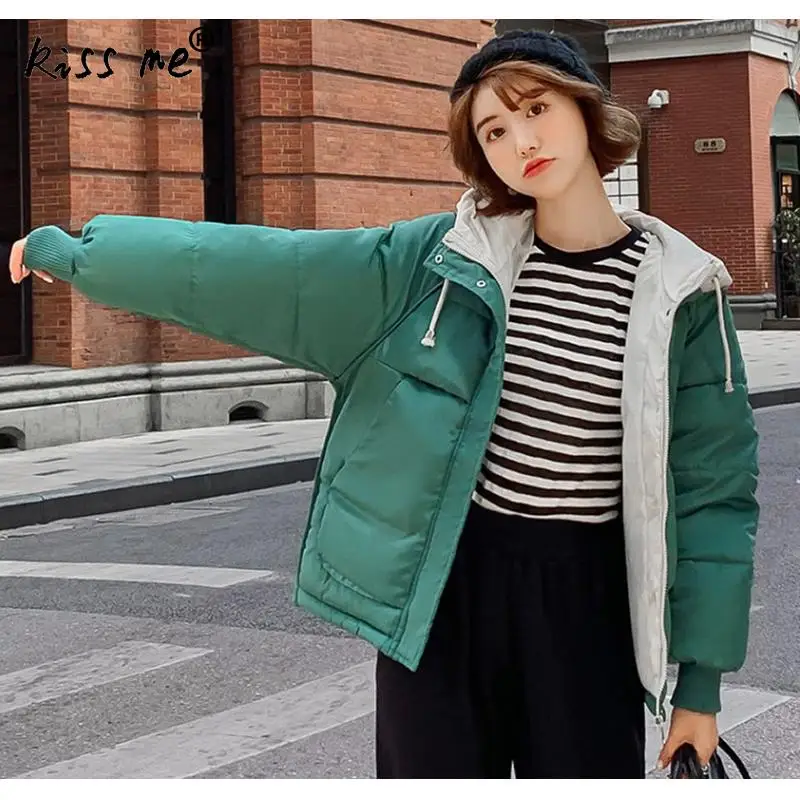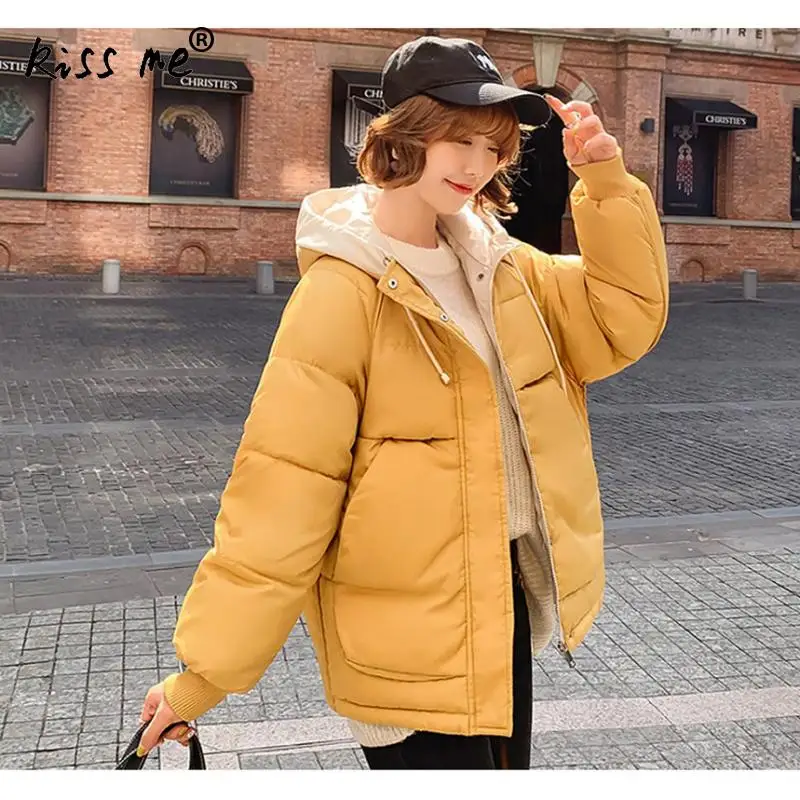 Однотонная Повседневная куртка с капюшоном для девочек, свободное теплое пуховое пальто, зимний ветрозащитный Теплый Хлопок, одежда, плотное Женское пальто