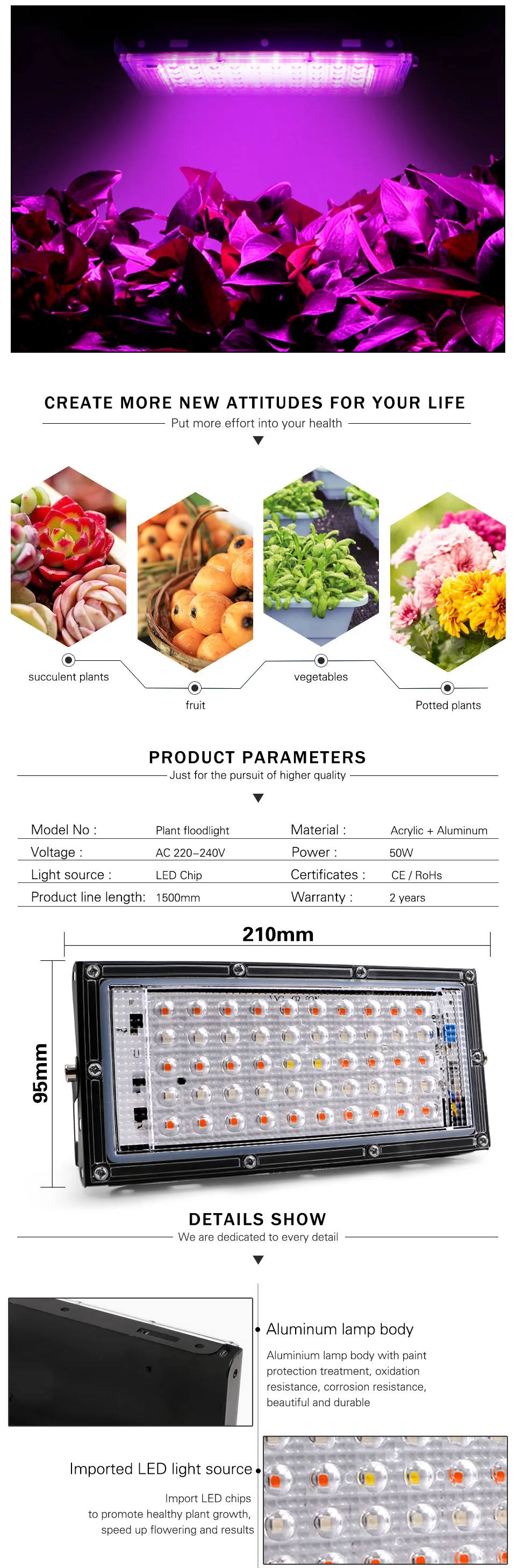 SOWOZ светодиодный роста растений лампа с евро вилкой 50 ваттов светодиодный AC 220 В завод прожектор тепличных растений гидропоники системы