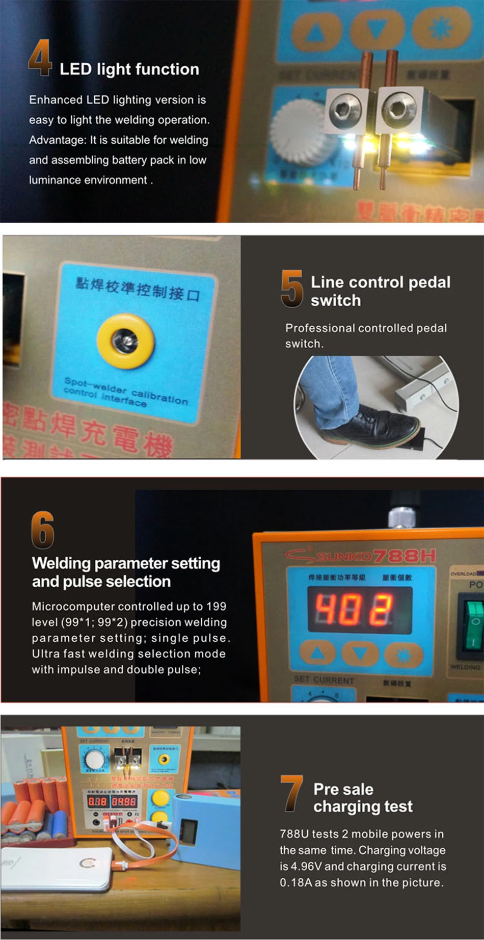 SUNKKO 788H Pulse Spot Welding Machine 1.5kw Spot Welder LED light Lithium Battery Test USB Charging for 18650 Battery Pack Weld
