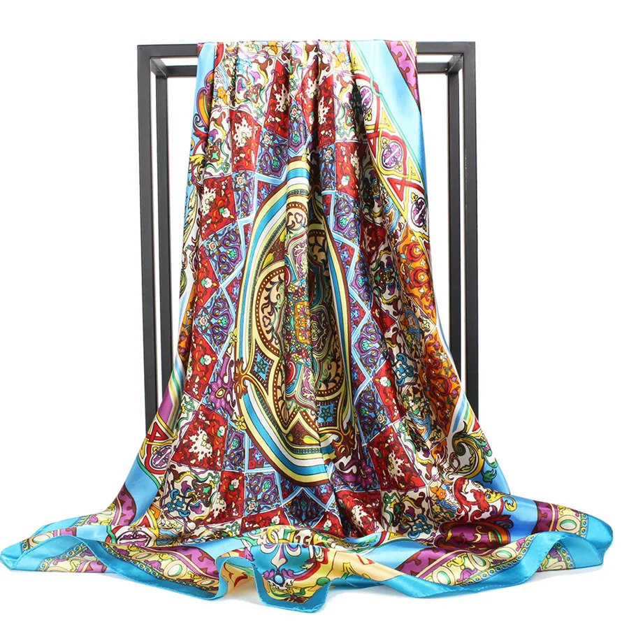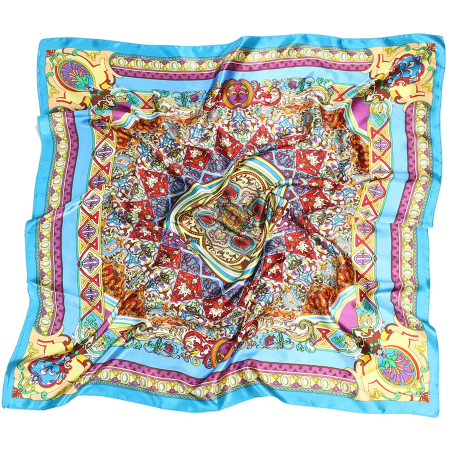 Feature: Top silk feeling polyester scarf, very good fabric, pleasant to touch material, fashion printing pattern, the colors are bright, 90cm square pashmina, magic silk scarf. You can tie it on your neck/ bag/ waist/ hand. Good quality in a very affordable price. It suits for any occasion. You will be outstanding when wearing such a scarf. Best gift for family members or friends. Come on, just get one piece for you! You will not regret for the purchase!
