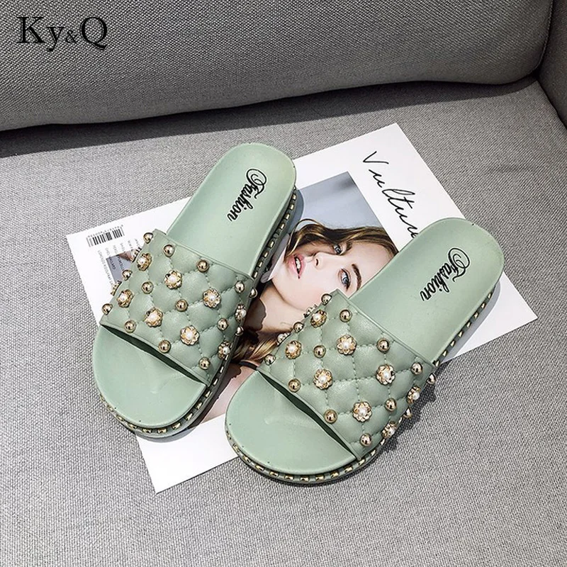 LuLaIKa/летние женские шлепанцы; Новинка 2020 года; Модные Нескользящие пляжные шлепанцы с жемчугом и металлической декоративной платформой