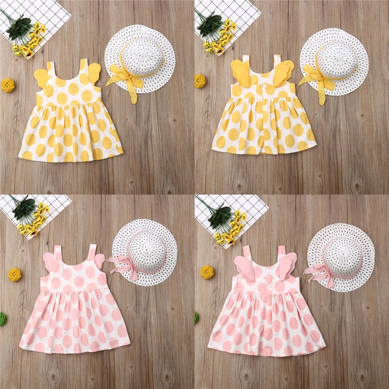 Платье в горошек для маленьких девочек; Соломенная шляпа; Комплект из 2 предметов!