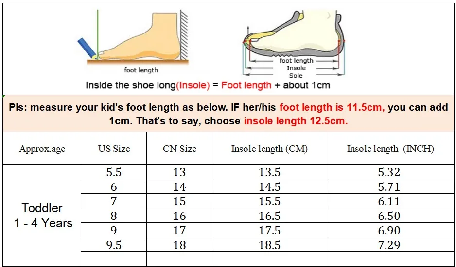 5. В отношении размера, Измерьте длину ступни ребенка, см, дюйм, 1 см или 0,03937 дюймаCh, Выберите соответствующий размер США, спасибо