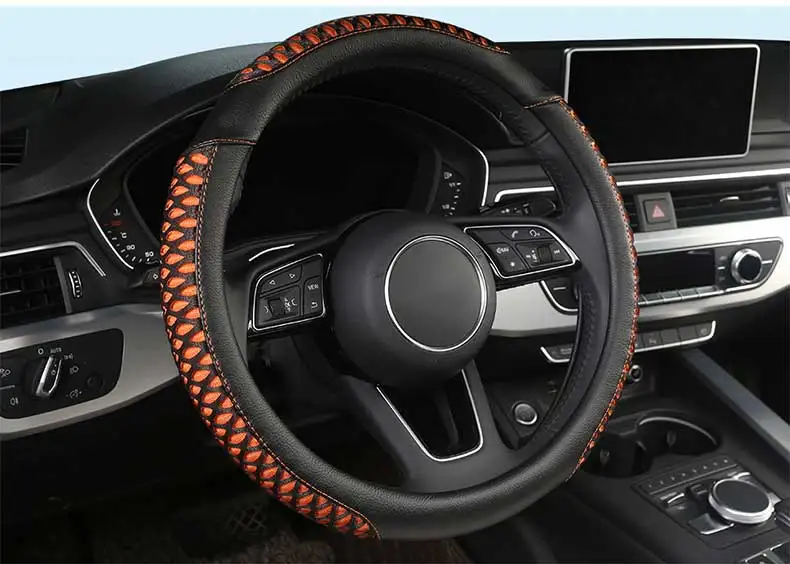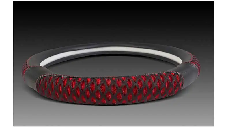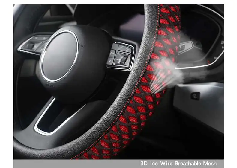 Характеристика: Износостойкая кожа + ледяной шелк, воздухопроницаемость, сохраняют сухость, не скользят. На ощупь даже лучше, чем натуральная кожа; Экологичное резиновое внутреннее кольцо для здоровья и защиты окружающей среды Диаметр 38 см, универсальный размер, подходит для большинства автомобилей. Описание: 1. Состояние: 100% dermay Новое 2. Материал: износостойкая кожа, ледяной шелк и белое внутреннее кольцо 3. Функции: воздухопроницаемость, сухость, скольжение, роскошный эргономичный дизайн, можно использовать четыре сезона. 4. Выбор диаметра: 38 см (15 дюймов) подходит для 96-ти автомобилей