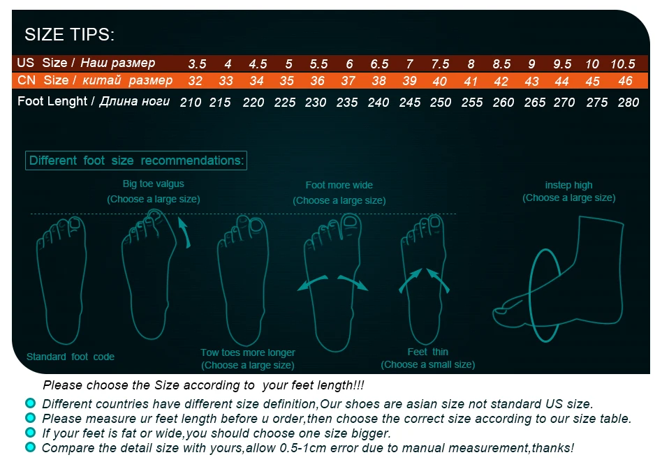 ? Пожалуйста, выберите цвет обуви, как показано на картинке. Мы вышлем вам? Правильный цвет. Может быть небольшая разница в цвете из-за? Учитывая различные настройки яркости монитора.