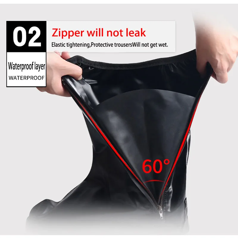 Резинка плотно прилегает и закрывается, молния не просачивается и защищает брюки от промокания.