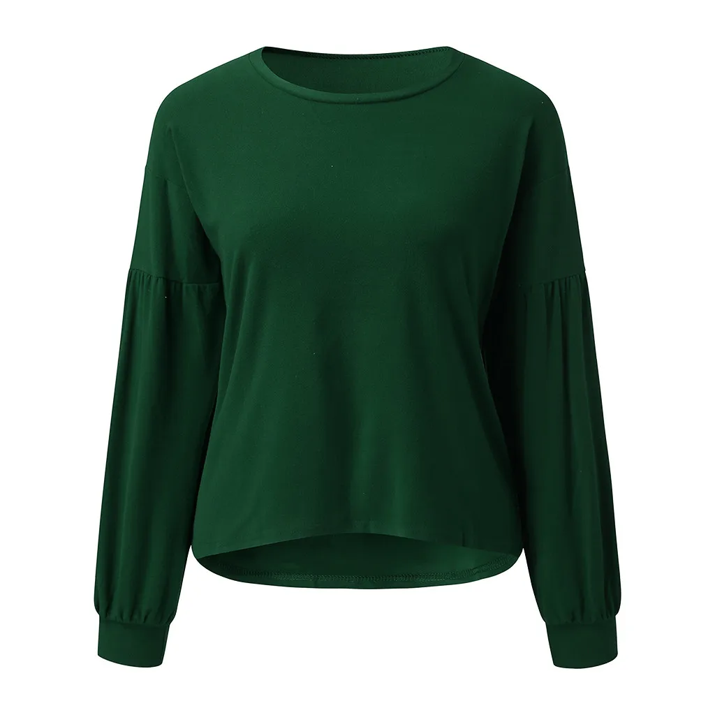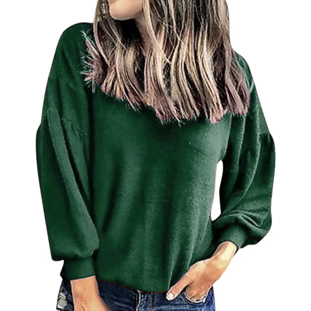 Свободная Повседневная однотонная женская толстовка с длинными рукавами и круглым вырезом