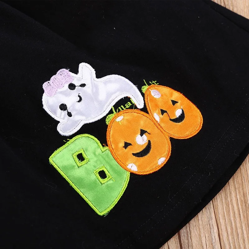 Комплект из 2 предметов, Одежда для новорожденных девочек платье с длинными рукавами и круглым вырезом с изображением тыквы + штаны + повязка на голову, хлопковые наряды на Хэллоуин для детей ясельного возраста