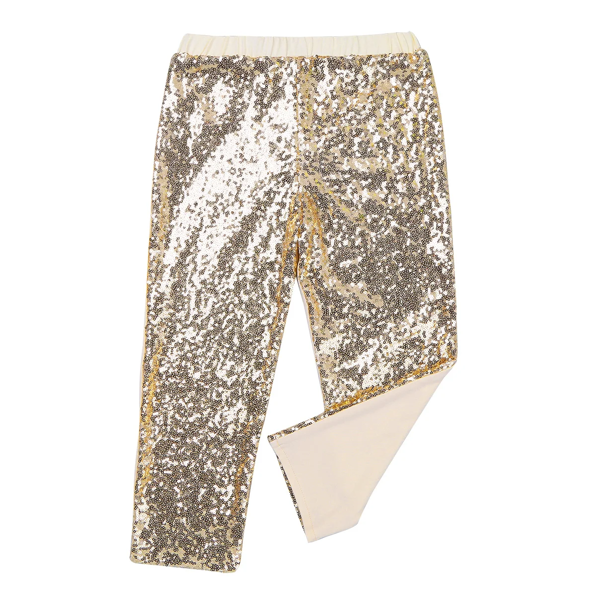 Брюки сделаны из полиэстера, хлопка и блесток, стираются вручную.