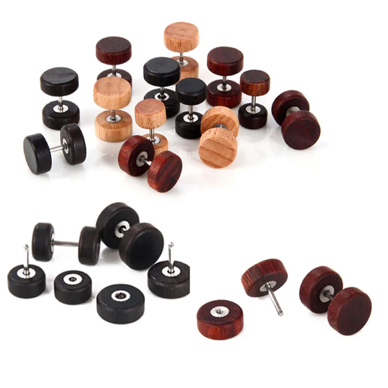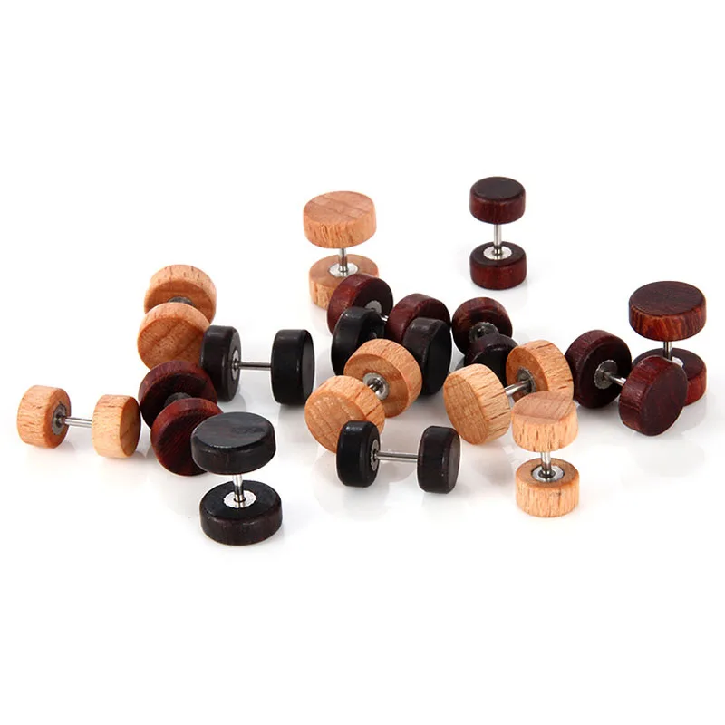 1 шт. панк двухсторонние Деревянные ювелирные изделия натуральная деревянная серьга гантели серьги-гвоздики
