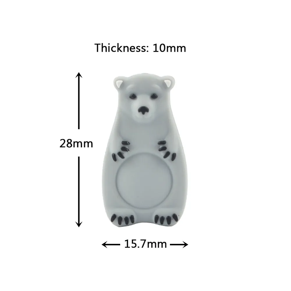 -Silicone Mini Polar Bear Beads- Packing: 5pcs/lot Colors: 5 colors Size: 28*15.7*10mm Material: 1.100% food grade silicone 2.BPA free 3.NO Phthalate 4. No leadership 5.PVC free -All products are free of BPA, phthalates, lead and PVC. If you need a certificate, please contact us and leave your email message. -New products should be washed with warm water before use, can be used after cooling, and should be cleaned after each use. -Easy to clean. It is recommended to disinfect the pacifier wipes. -Please wash before use, please do not put the product on unsupervised children!